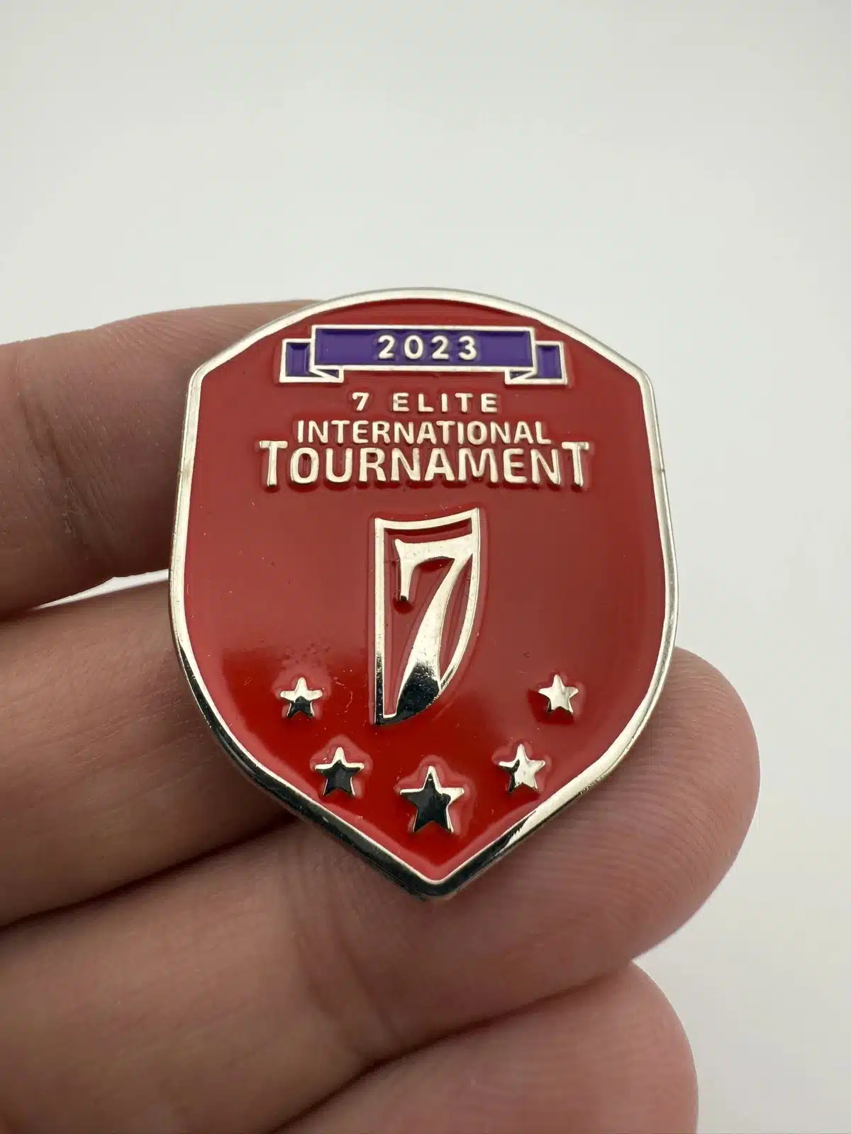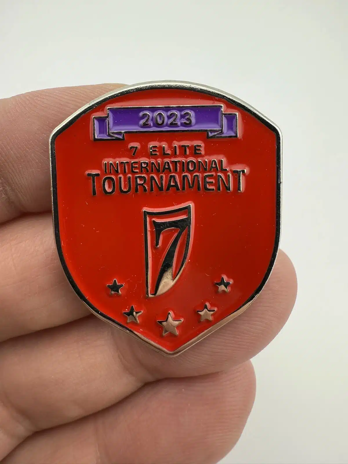 This pin is from the 2023 7 Elite International Tournament, a yearly youth soccer tournament.