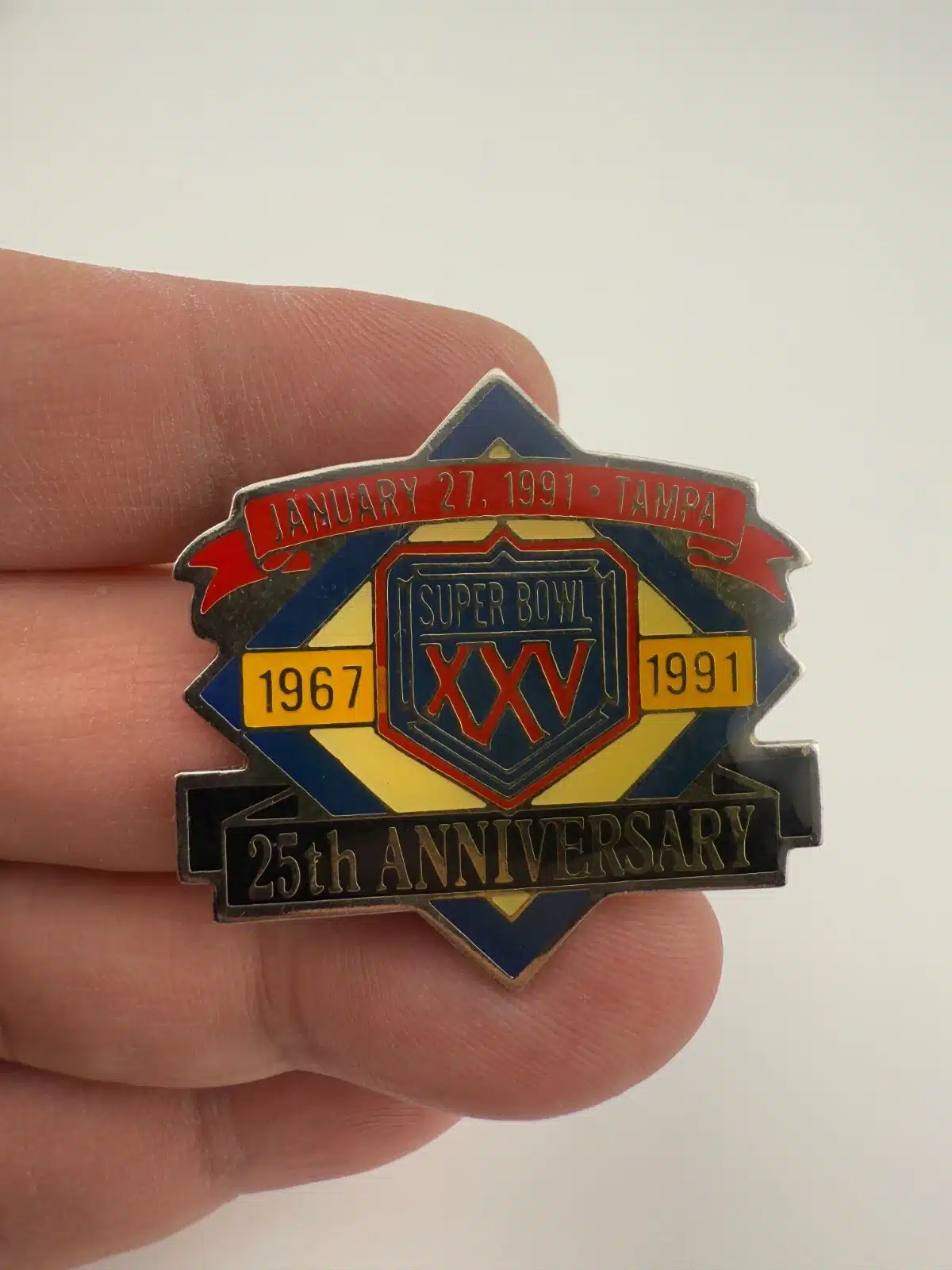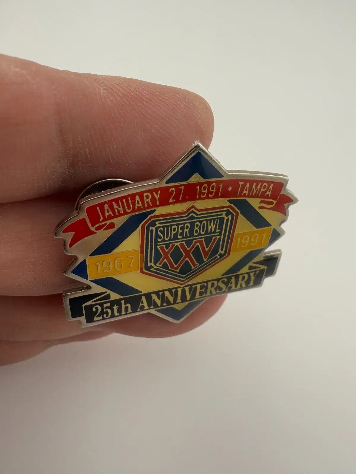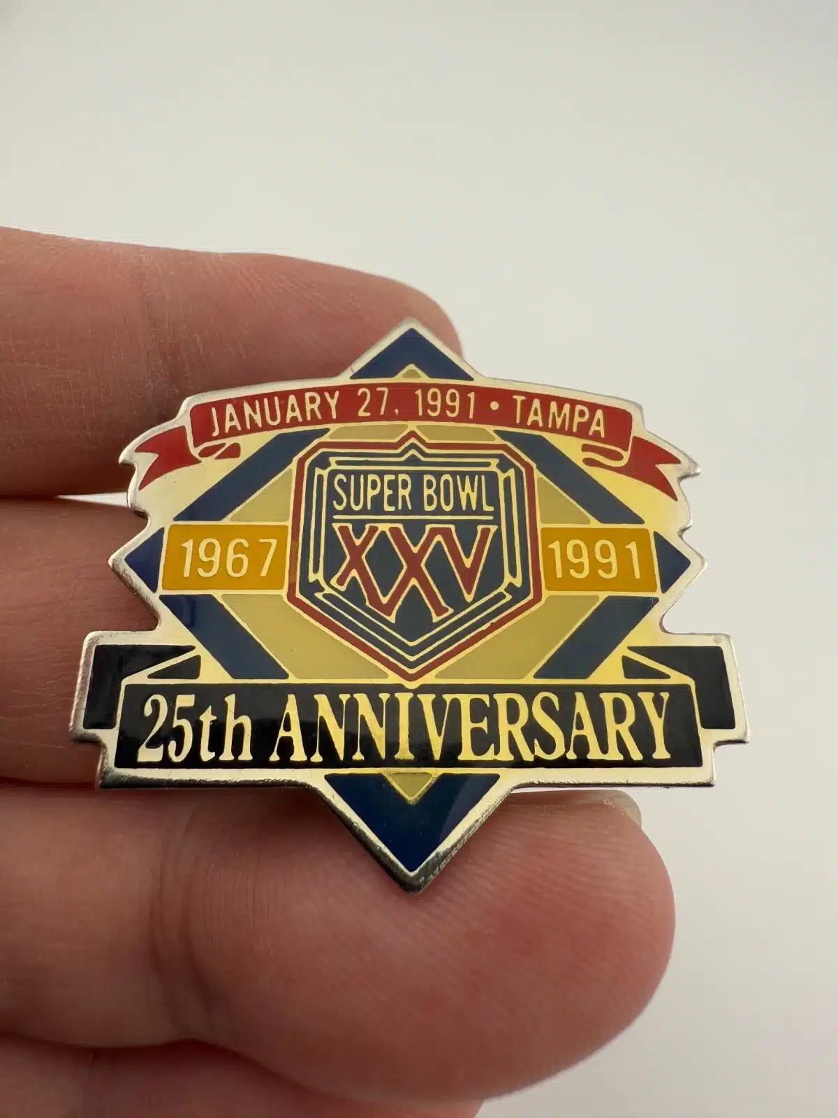 25th Anniversary Super Bowl XXV NY GIANTS vs BUFFALO BILLS Pin – Peter David