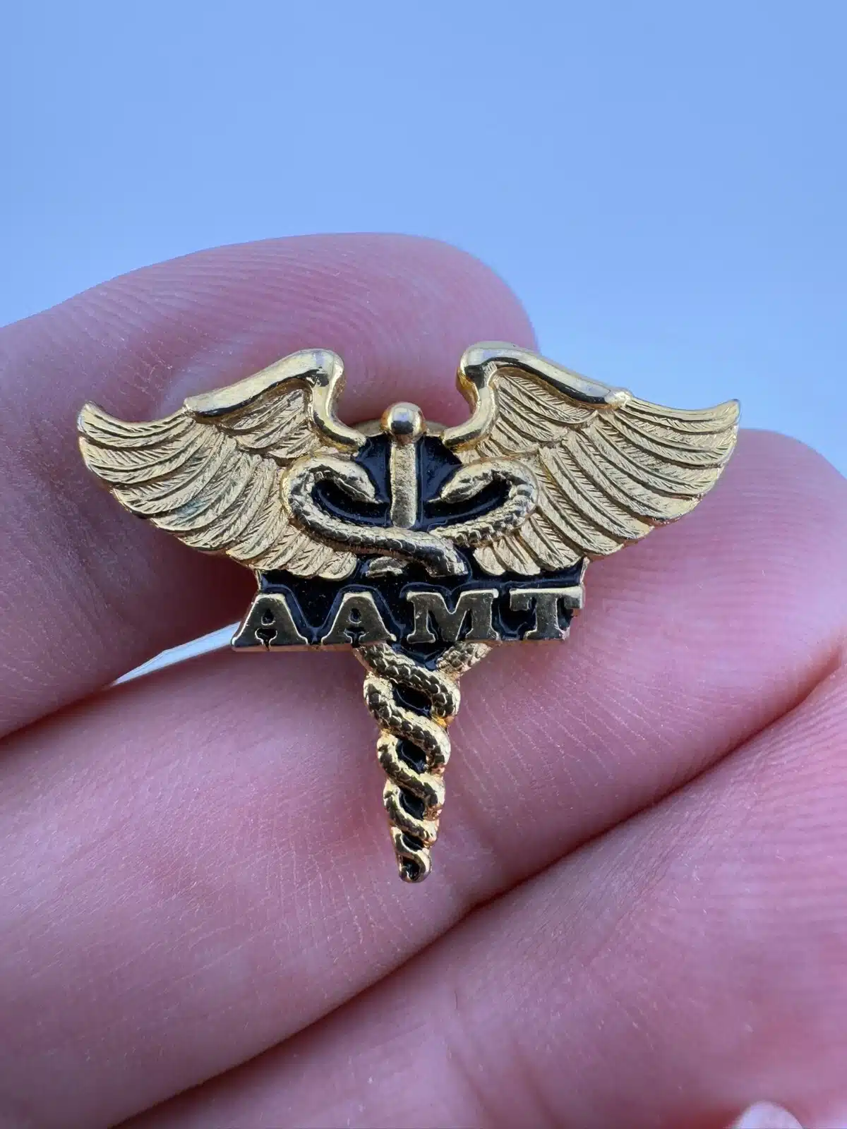 AAMT Medical Transcription Gold Tone Enamel Pin