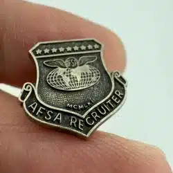 The Air Force Sergeants Association represents enlisted members of the United States Air Force, with recruiter pins recognizing individuals involved in membership growth and outreach efforts. Pin measures approximately 5/8 inch in width by 5/8 inch in height.
