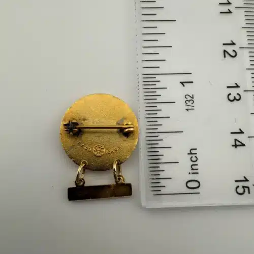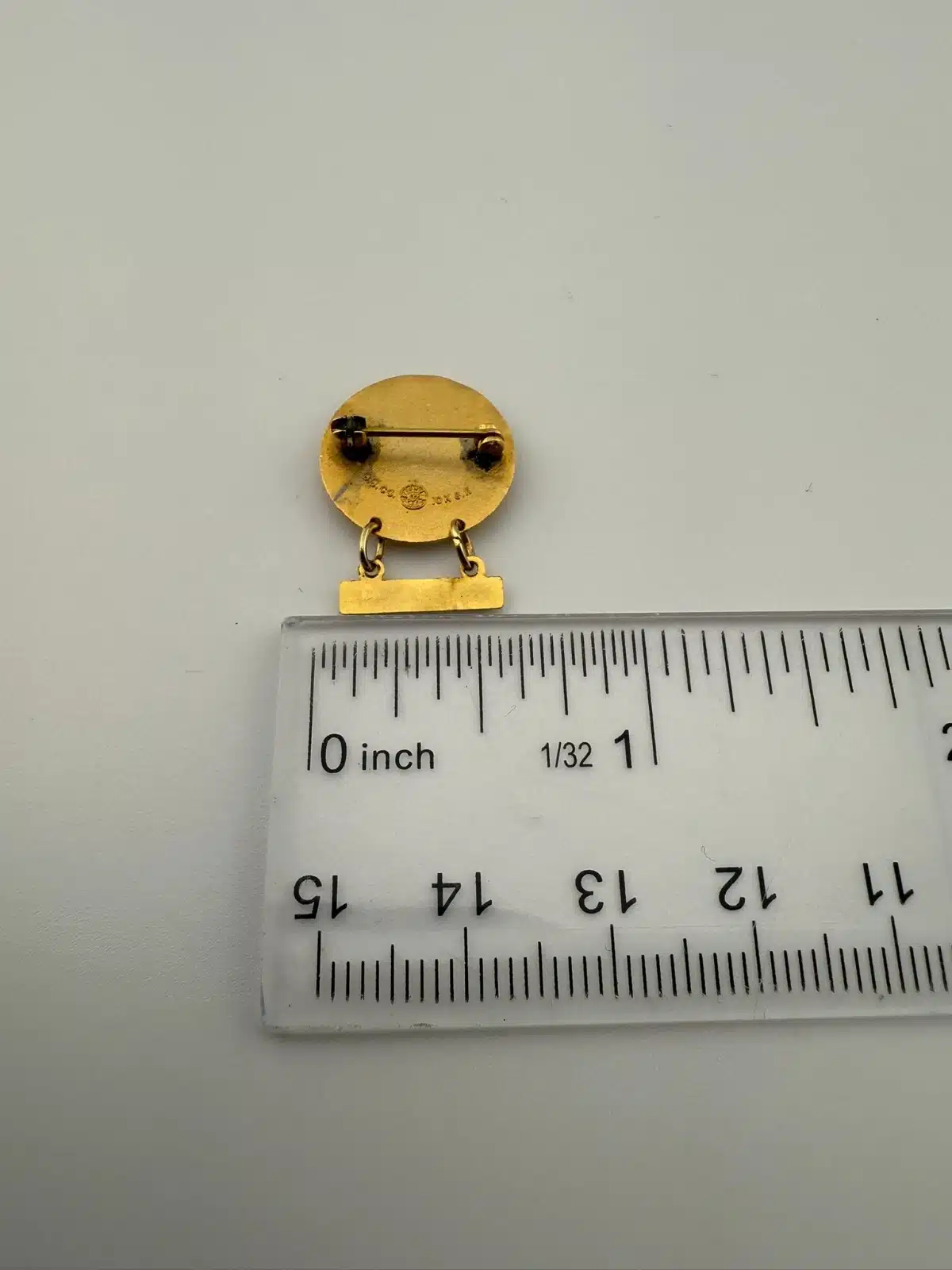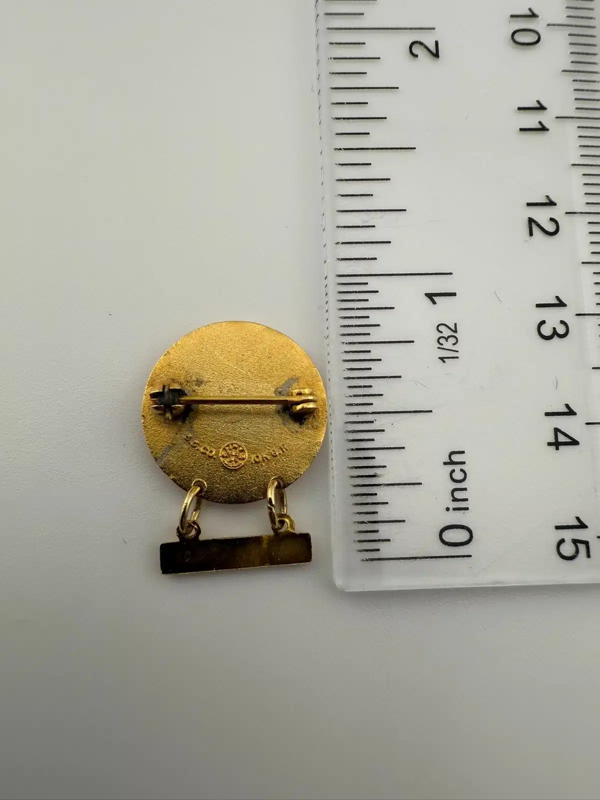 The Allied Industrial Workers of America was a labor union representing workers across various industries, with retired member pins recognizing individuals after their active service. The piece is marked 1/10 10K gold filled. Pin measures approximately 5/8 inch in width by over 3/4 inch in height.