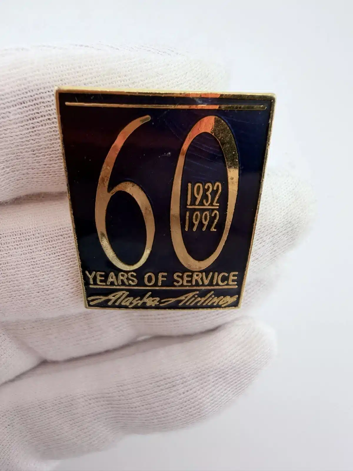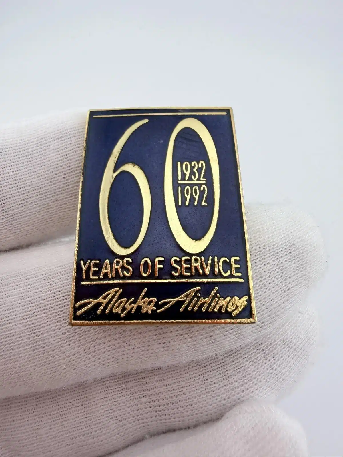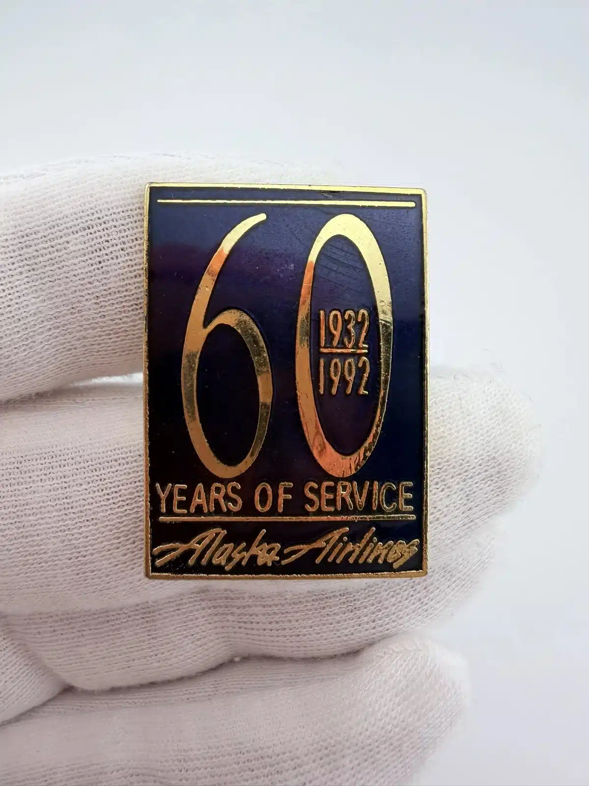Alaska Airlines 1932-1992 60 Years Of Service Pin – Curved Item – Damage