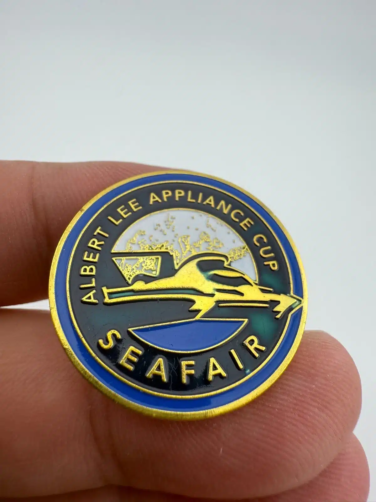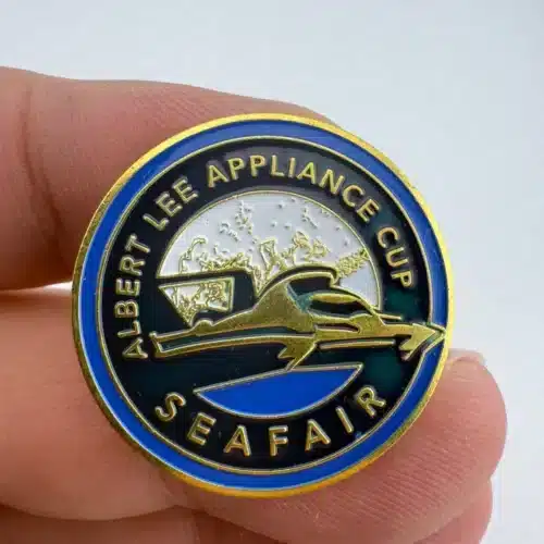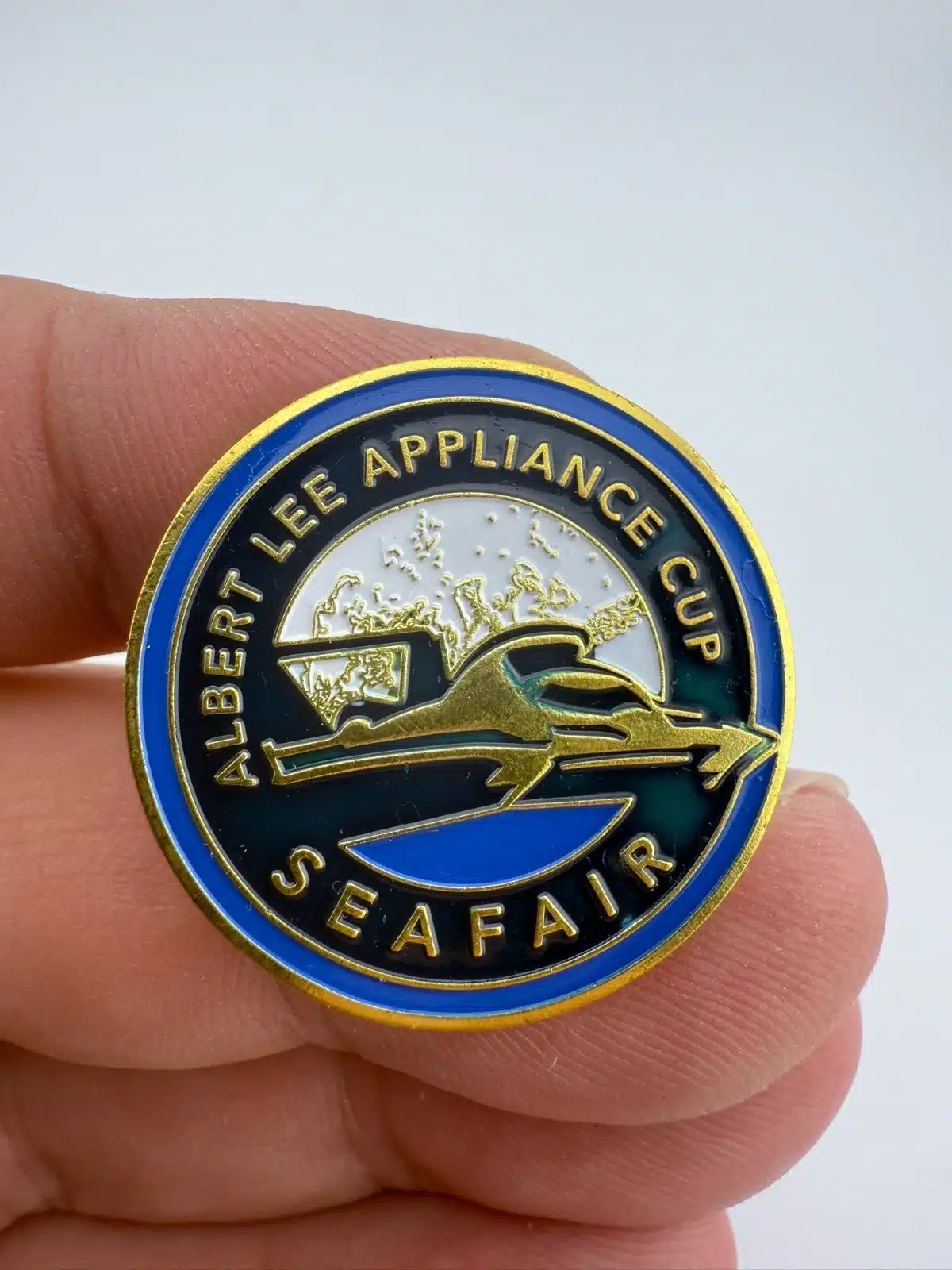 Albert Lee Appliance Cup Seafair Pin with Hydroplane Racing and Water Splashing