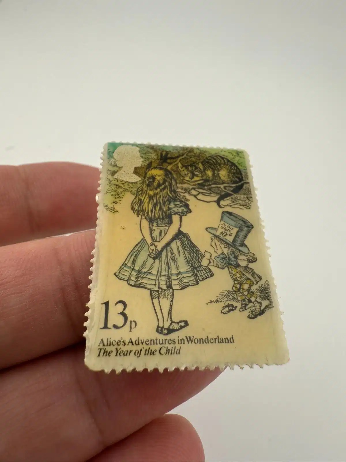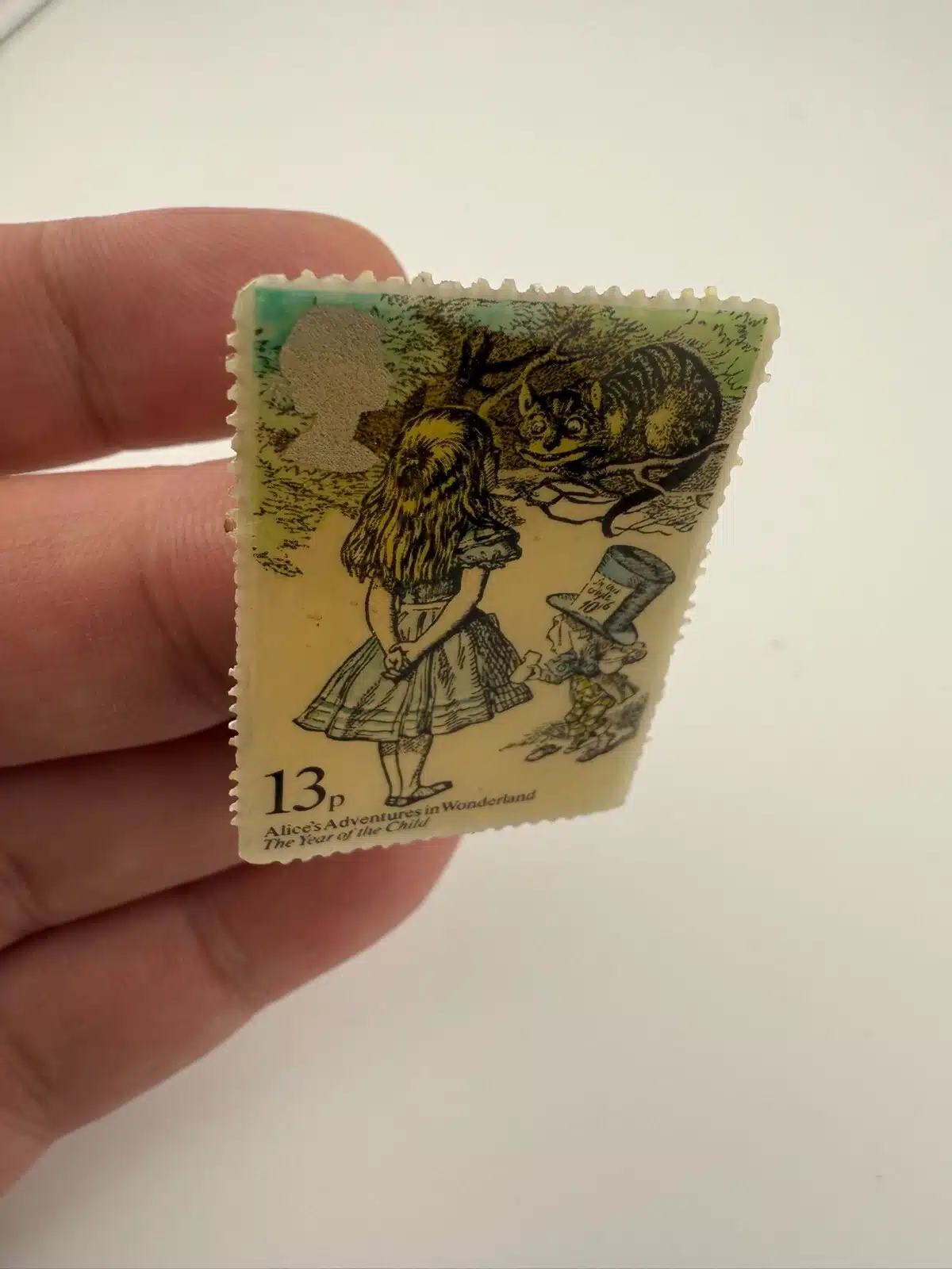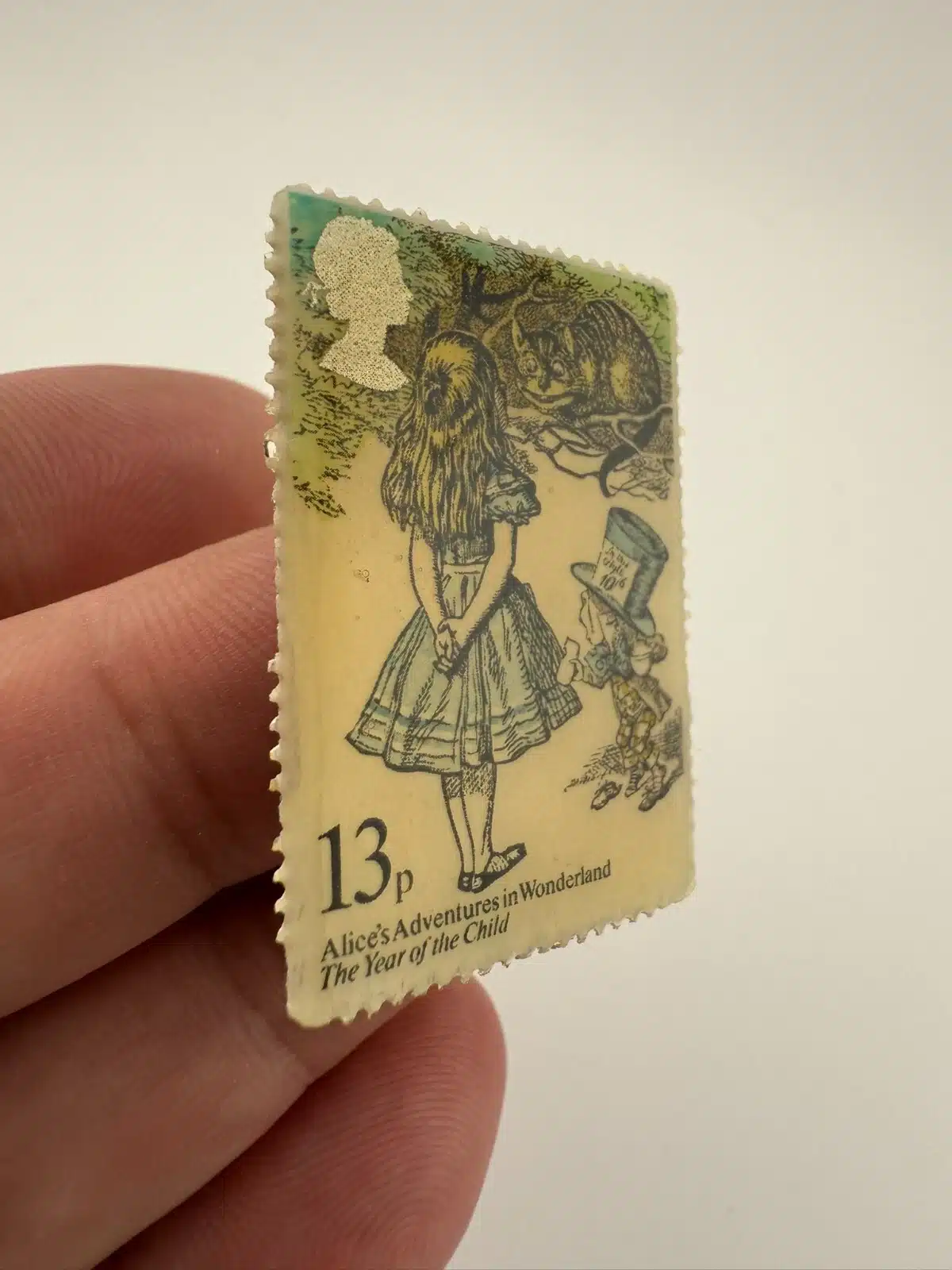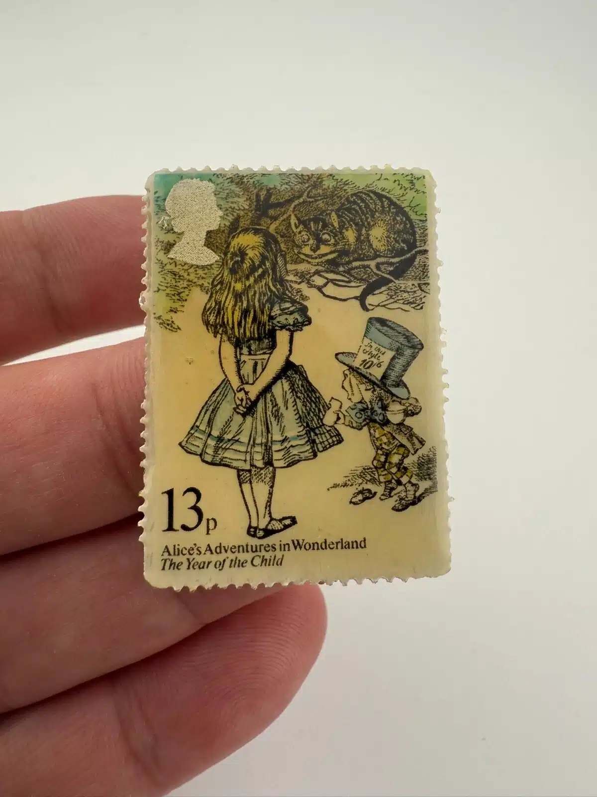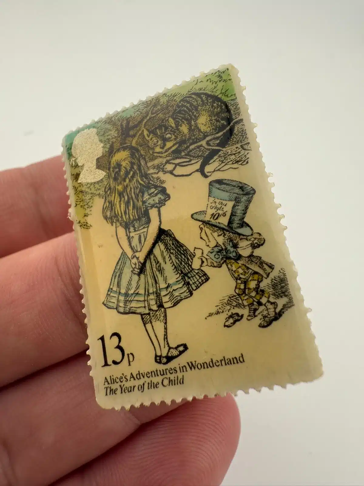 Alice in Wonderland Genuine Postage Stamps Pin Made In San Francisco