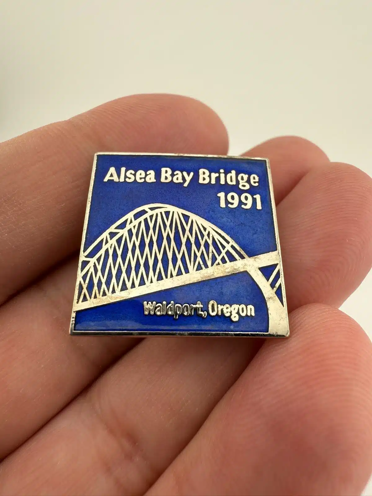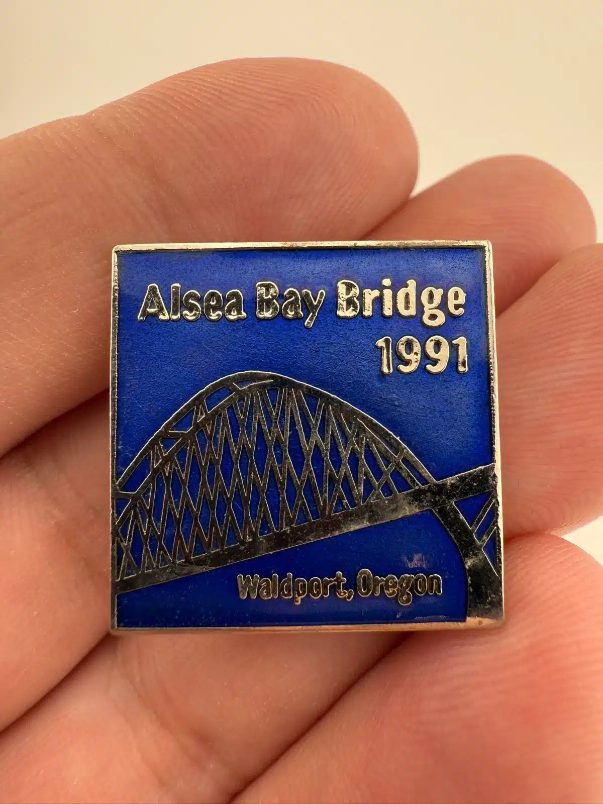 Alsea Bay Bridge 1991 Waldport Oregon OR Metal & Blue Enamel Lapel Pin Pinback