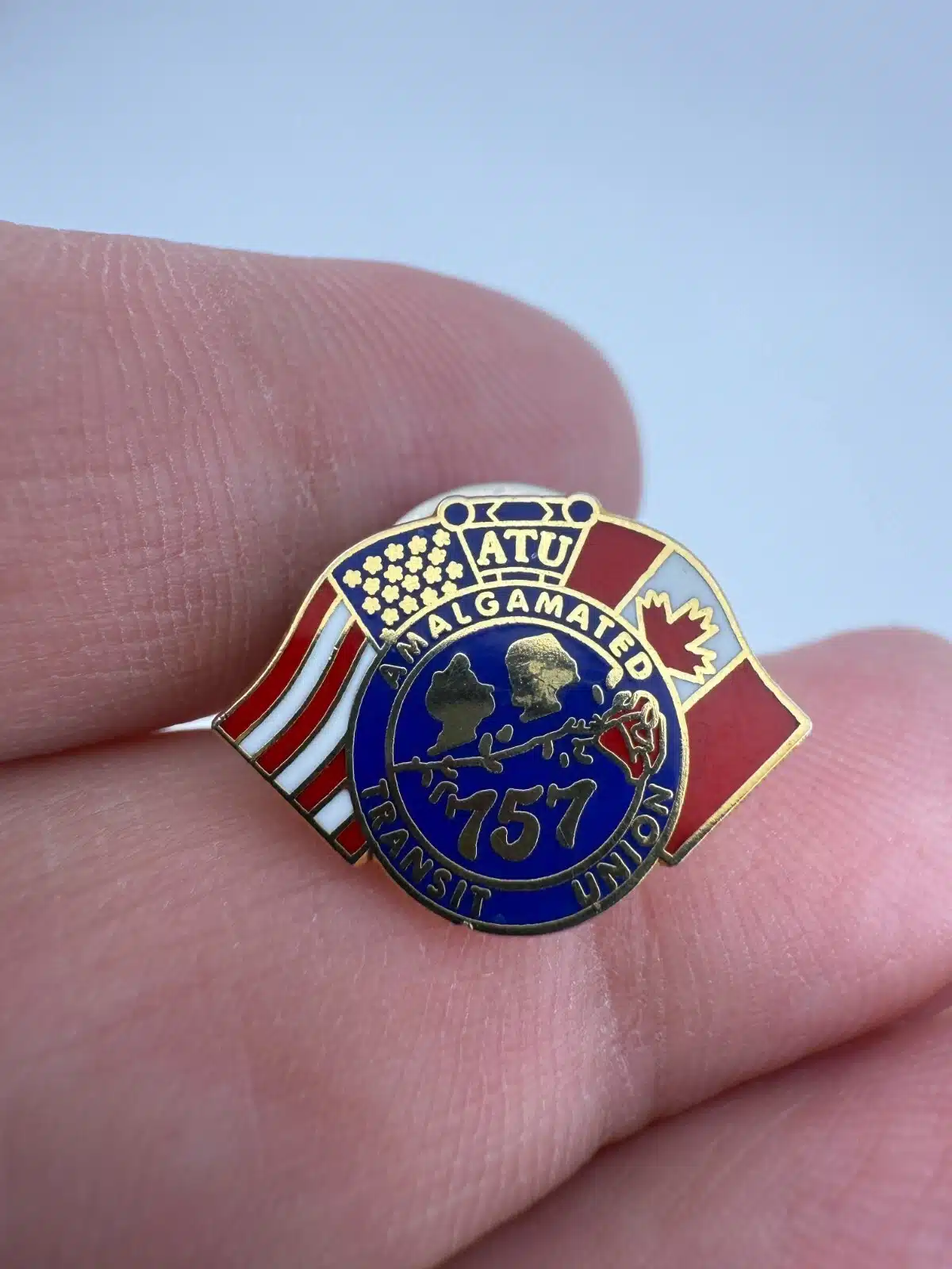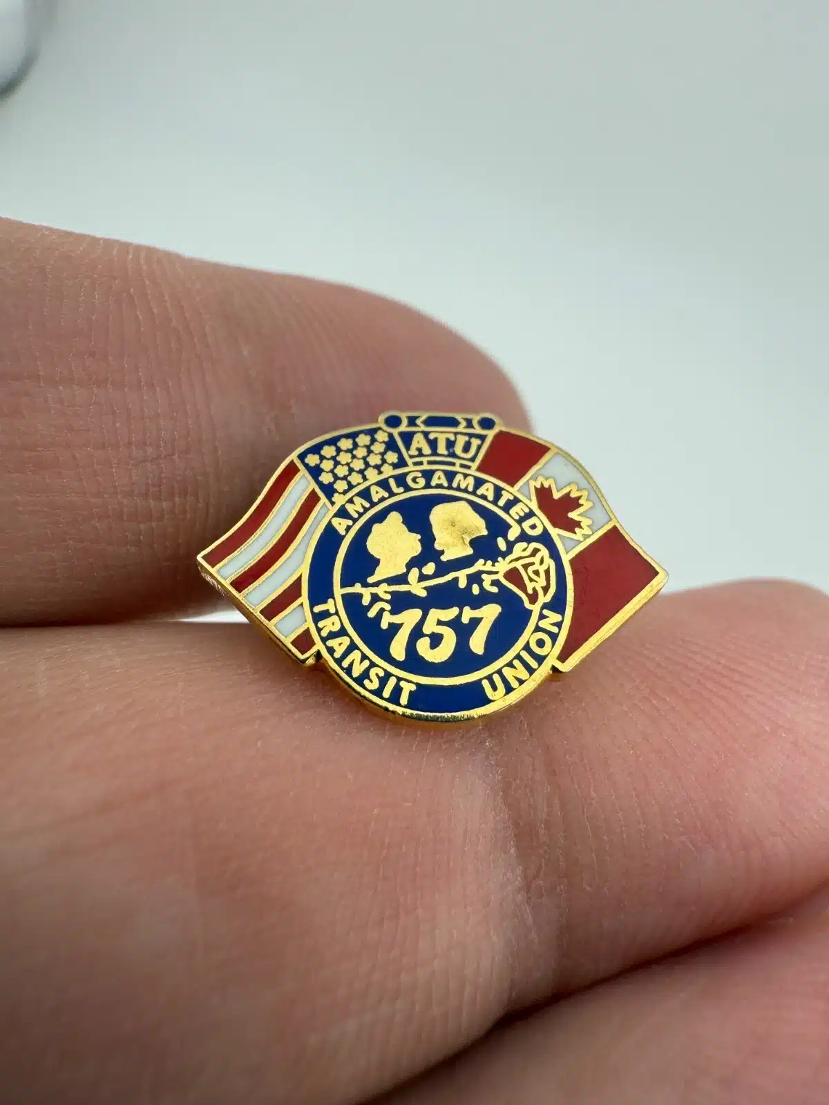 Amalgamated Transit Union 757 Pin – USA + Canada Flags Lapel Pin