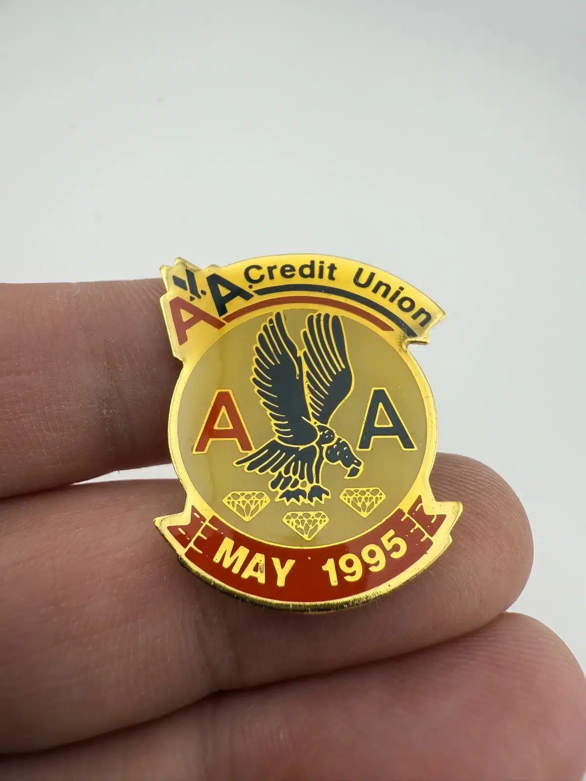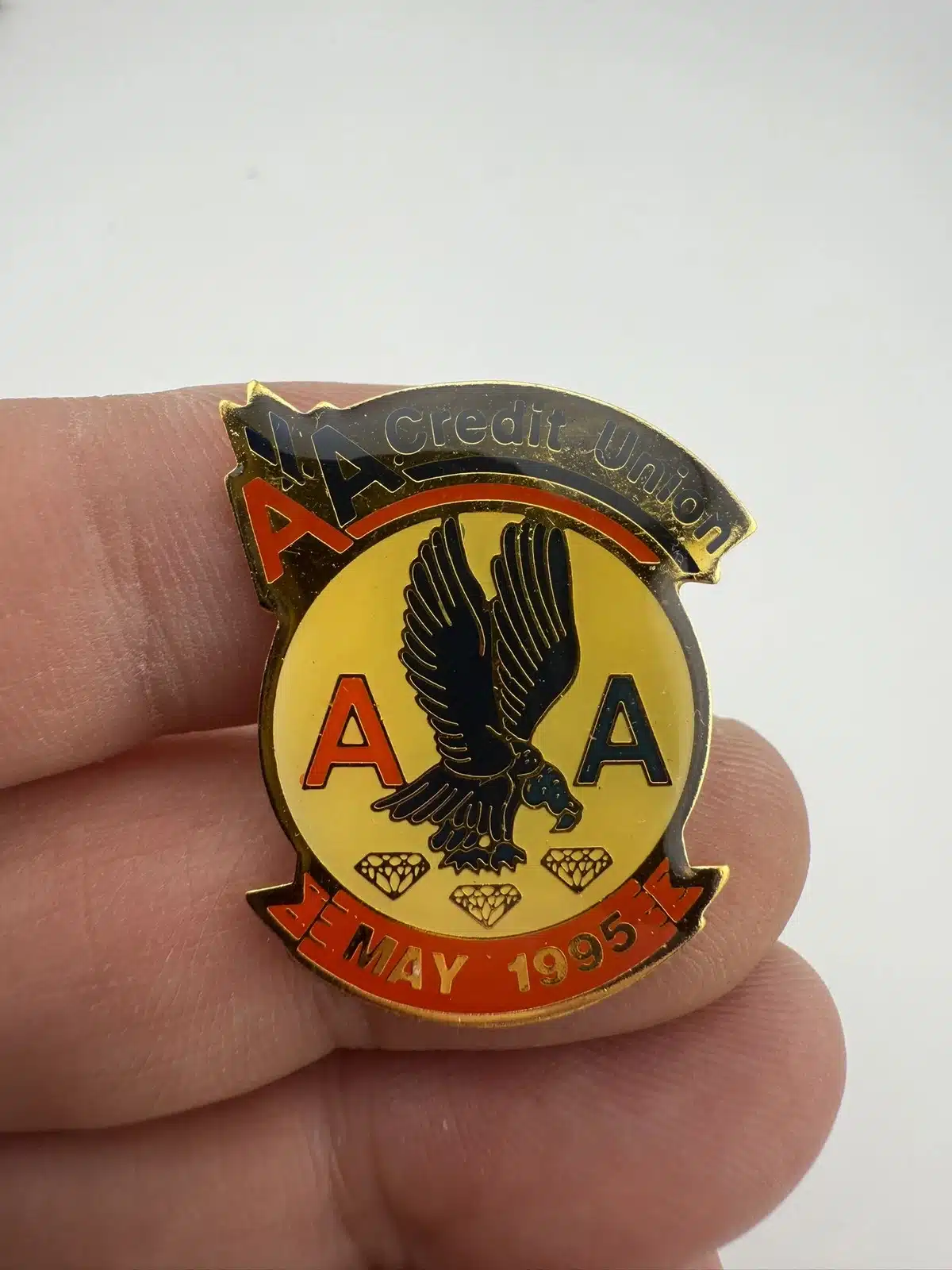 American Airlines Credit Union Pin – May 1995 – AA Eagle Logo, 3 Diamond Logos