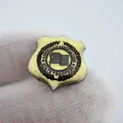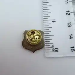 This American Association Of State Troopers badge style shield pin featuring a detailed law enforcement themed design. The pin measures just under 3/4 inch wide by under 3/4 inch tall.