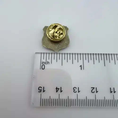 This American Association Of State Troopers badge style shield pin featuring a detailed law enforcement themed design. The pin measures just under 3/4 inch wide by under 3/4 inch tall.