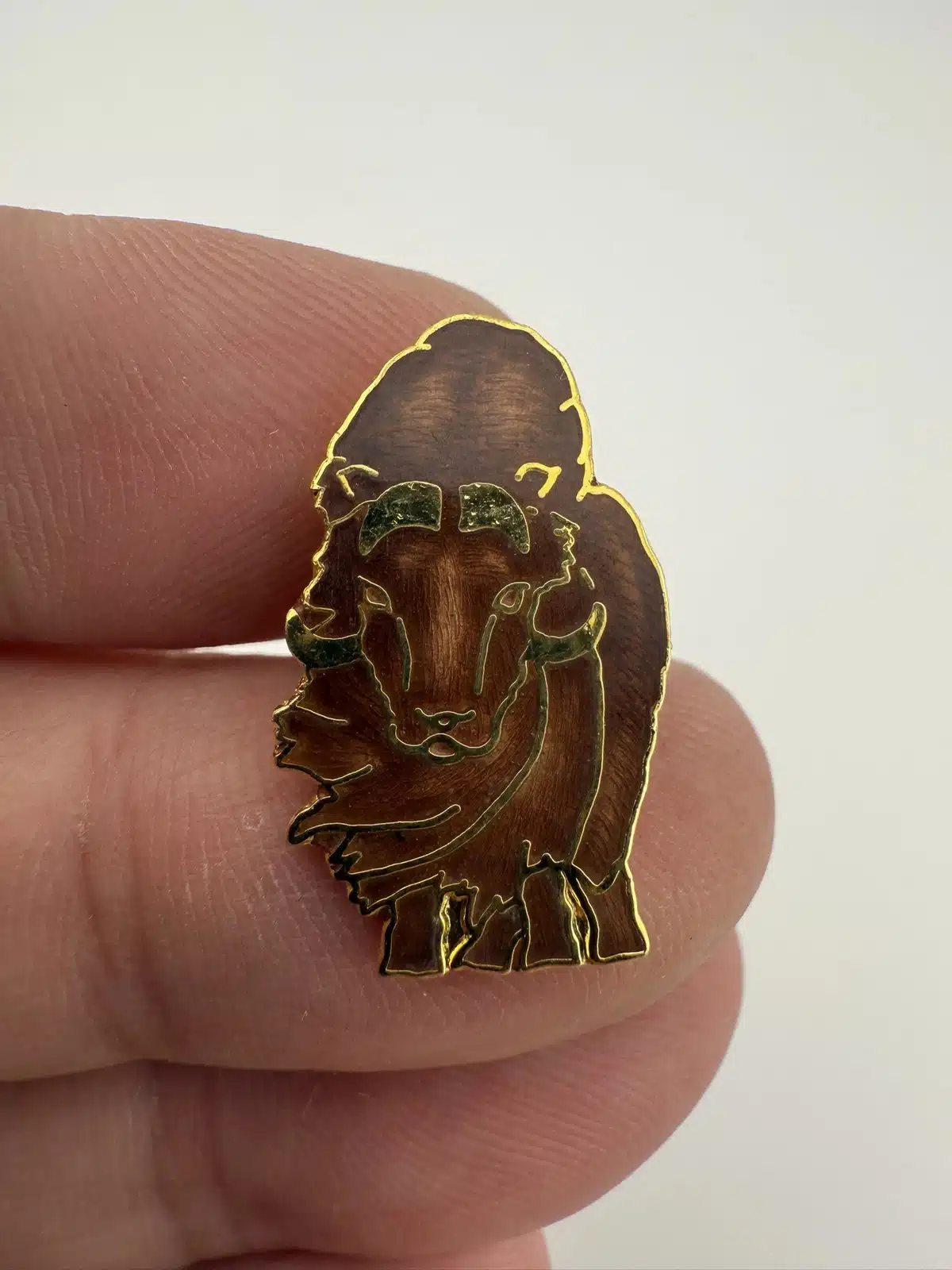 Really powerful looking American bison enamel pin with lots of detail.