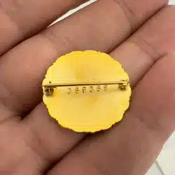 I removed this pin from plastic bag that was stapled closed to photograph the pin. Pin is possibly unworn, however the area around the red cross in the center is off white with production flaws. Please see all photos for exact condition of item and size.