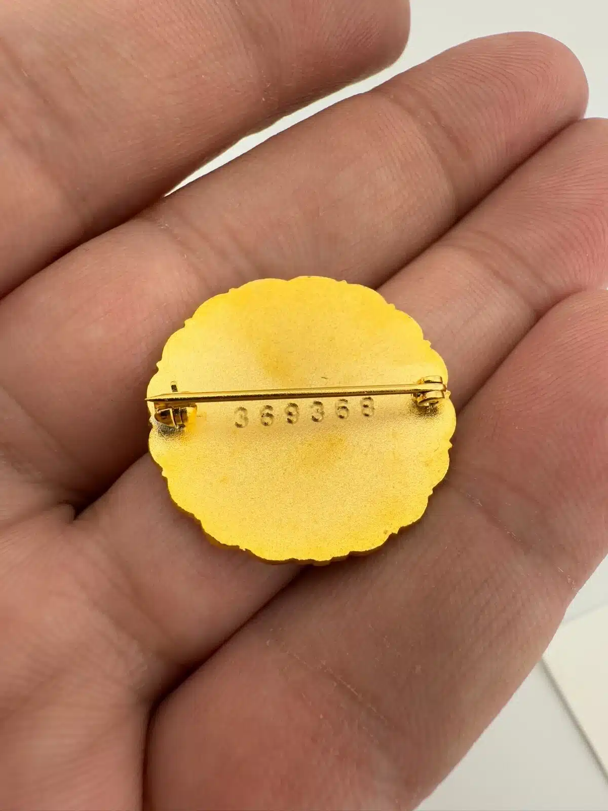 I removed this pin from plastic bag that was stapled closed to photograph the pin. Pin is possibly unworn, however the area around the red cross in the center is off white with production flaws. Please see all photos for exact condition of item and size.