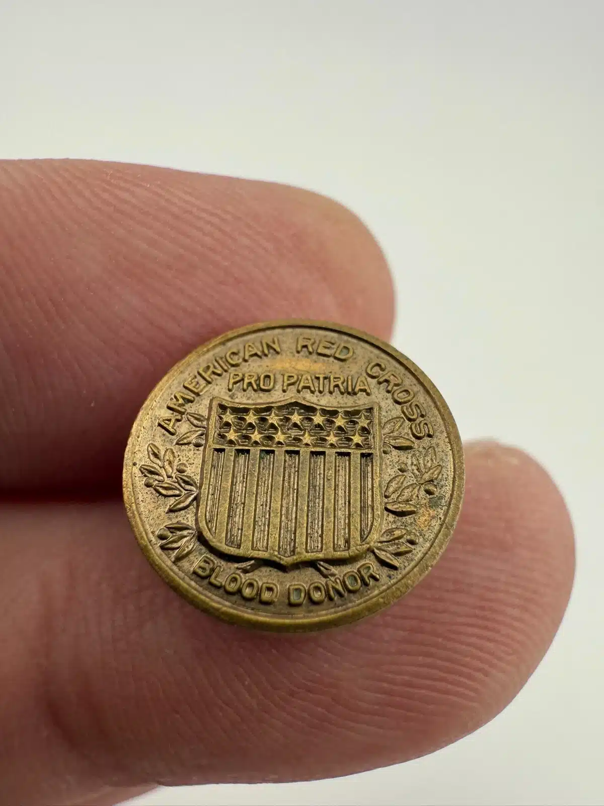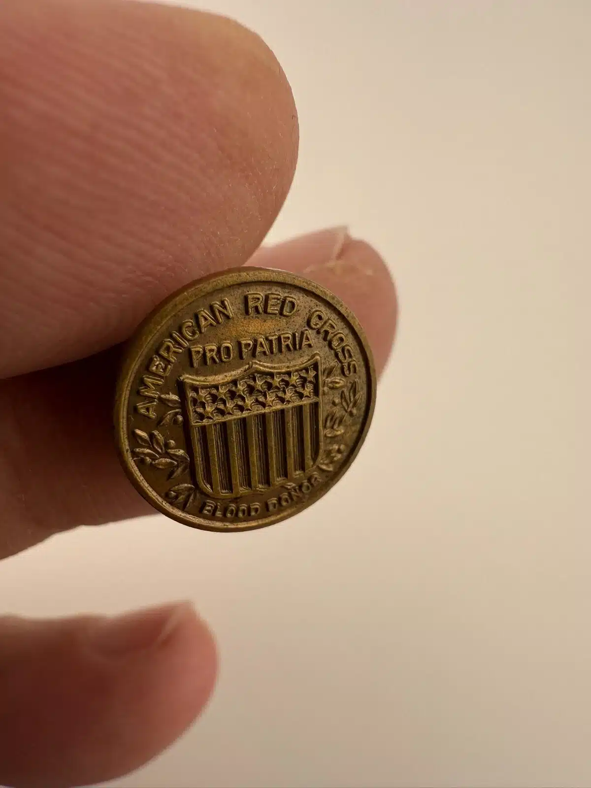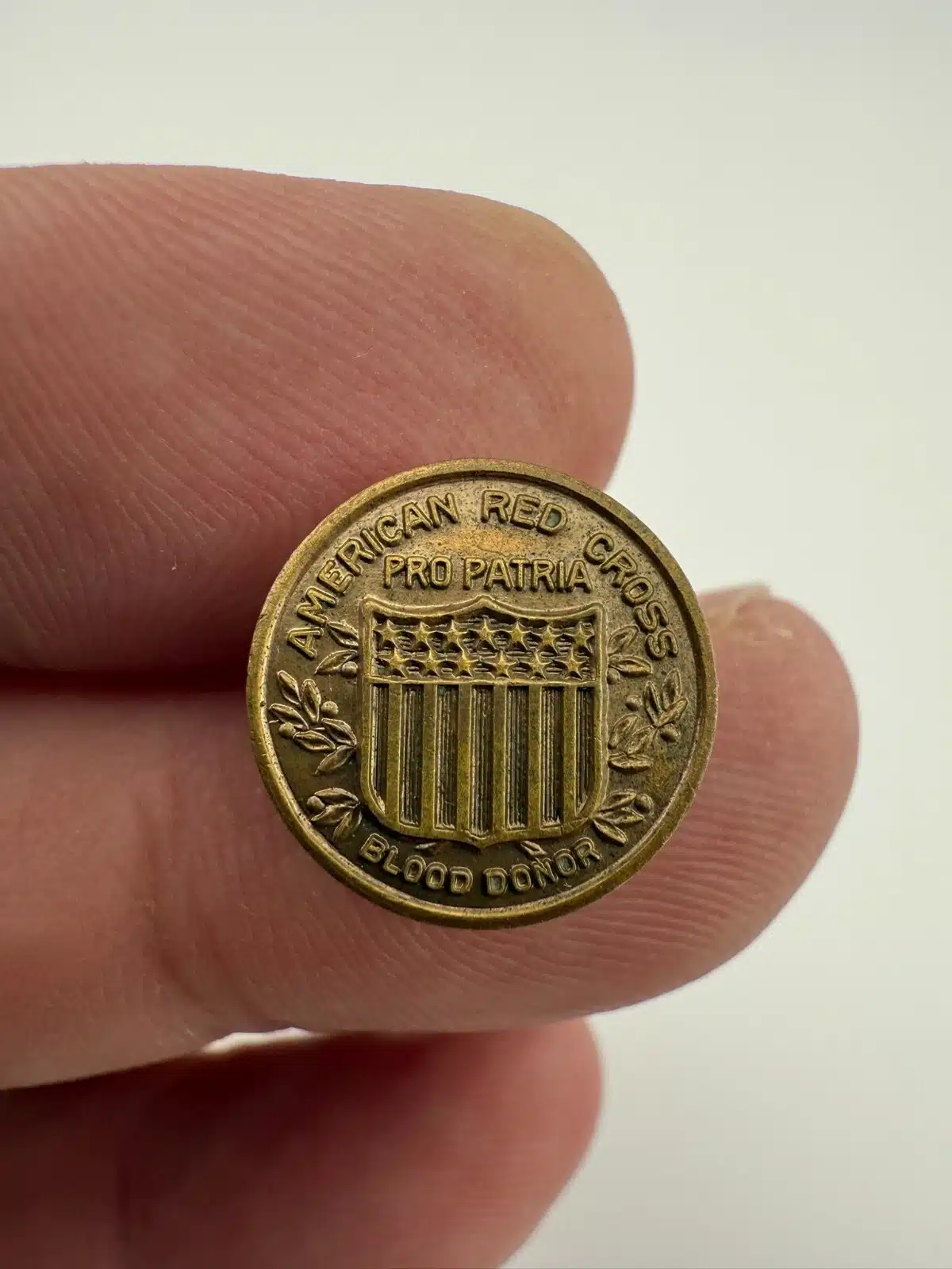 American Red Cross Pro Patria Blood Donor Screwback Pin – Bronze Tone