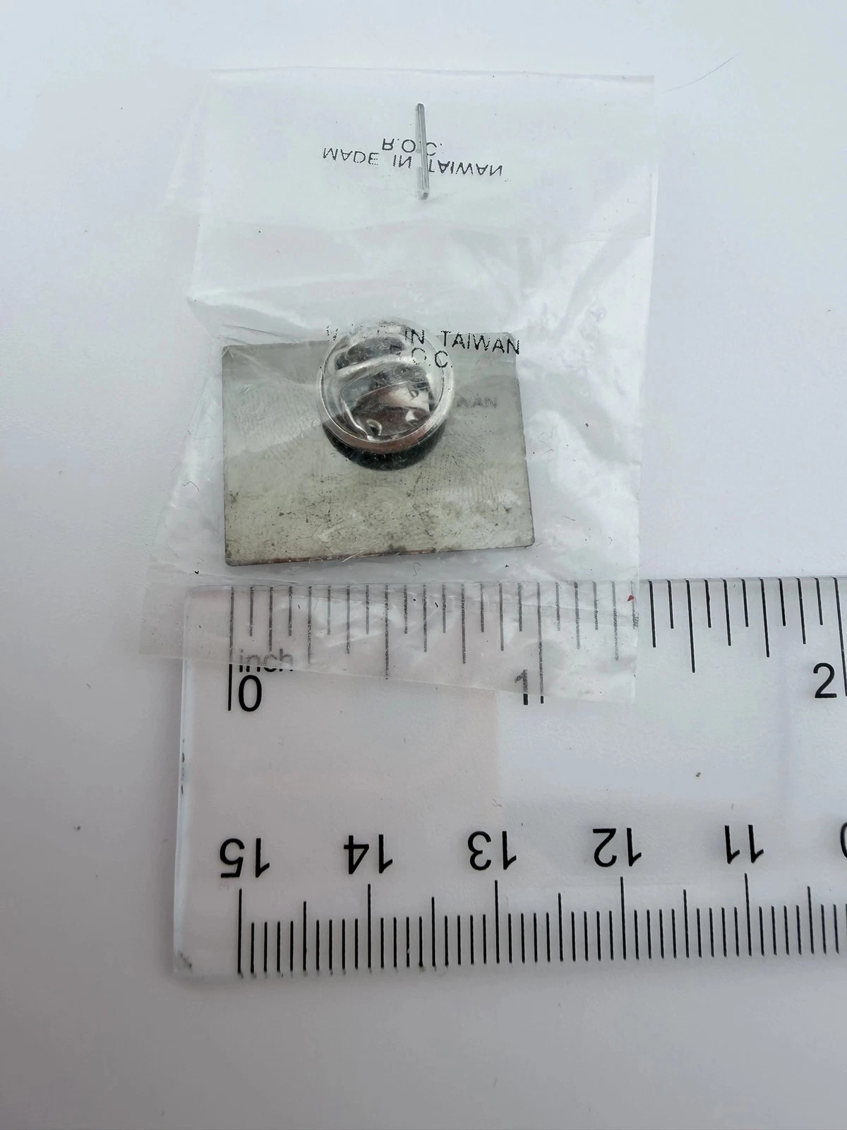 The pin measures approximately 1 inch in width by 3/4 inch in height.