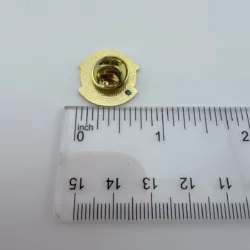 The pin measures approximately just under 3/4 inch in width by 3/4 inch in height.