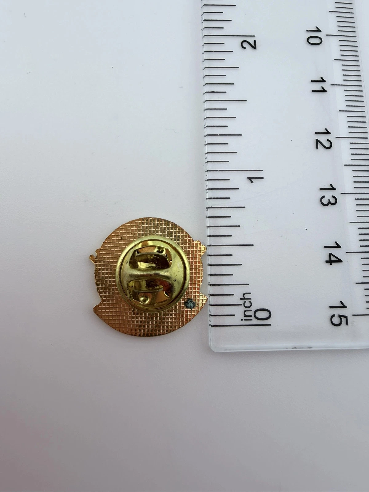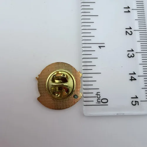 The pin measures approximately just under 3/4 inch in width by 3/4 inch in height.