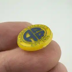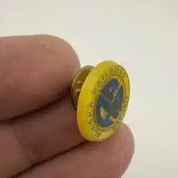 This lapel pin features the distinctive logo of the Alaska Railroad, showcasing the iconic ‘ARR’ initials in bold lettering against a yellow background. Made of plastic, this pin serves as a nostalgic reminder of the railroad’s historical significance in connecting communities across the state since 1914.