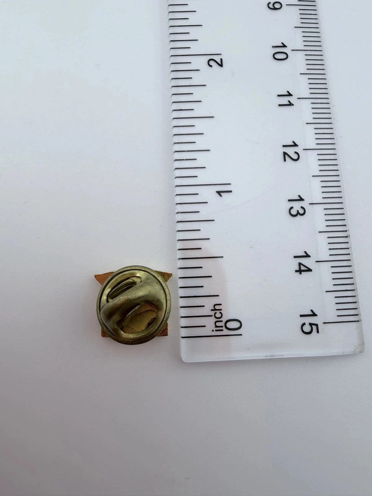 Pin measures less than 1/2 inch in width by less than 1/2 inch in height.