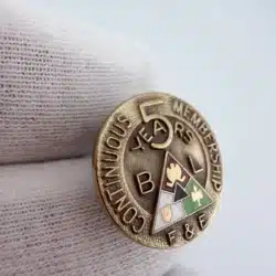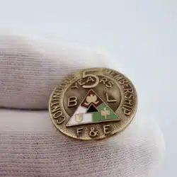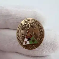 The Brotherhood of Locomotive Firemen and Enginemen was a prominent railroad labor union representing locomotive firemen and engineers, playing a significant role in labor advocacy within the railroad industry during the late 19th and 20th centuries. The 5 year member designation indicates a service milestone within the organization.