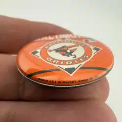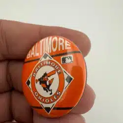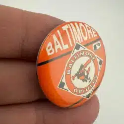 The Baltimore Orioles are a Major League Baseball team based in Baltimore, Maryland, with a history dating back to 1901 as part of the American League. This piece was manufactured by Aminco and measures approximately 1.25 inches in diameter.