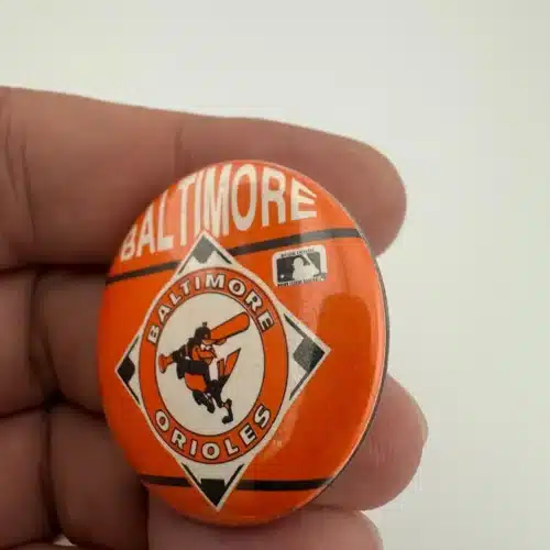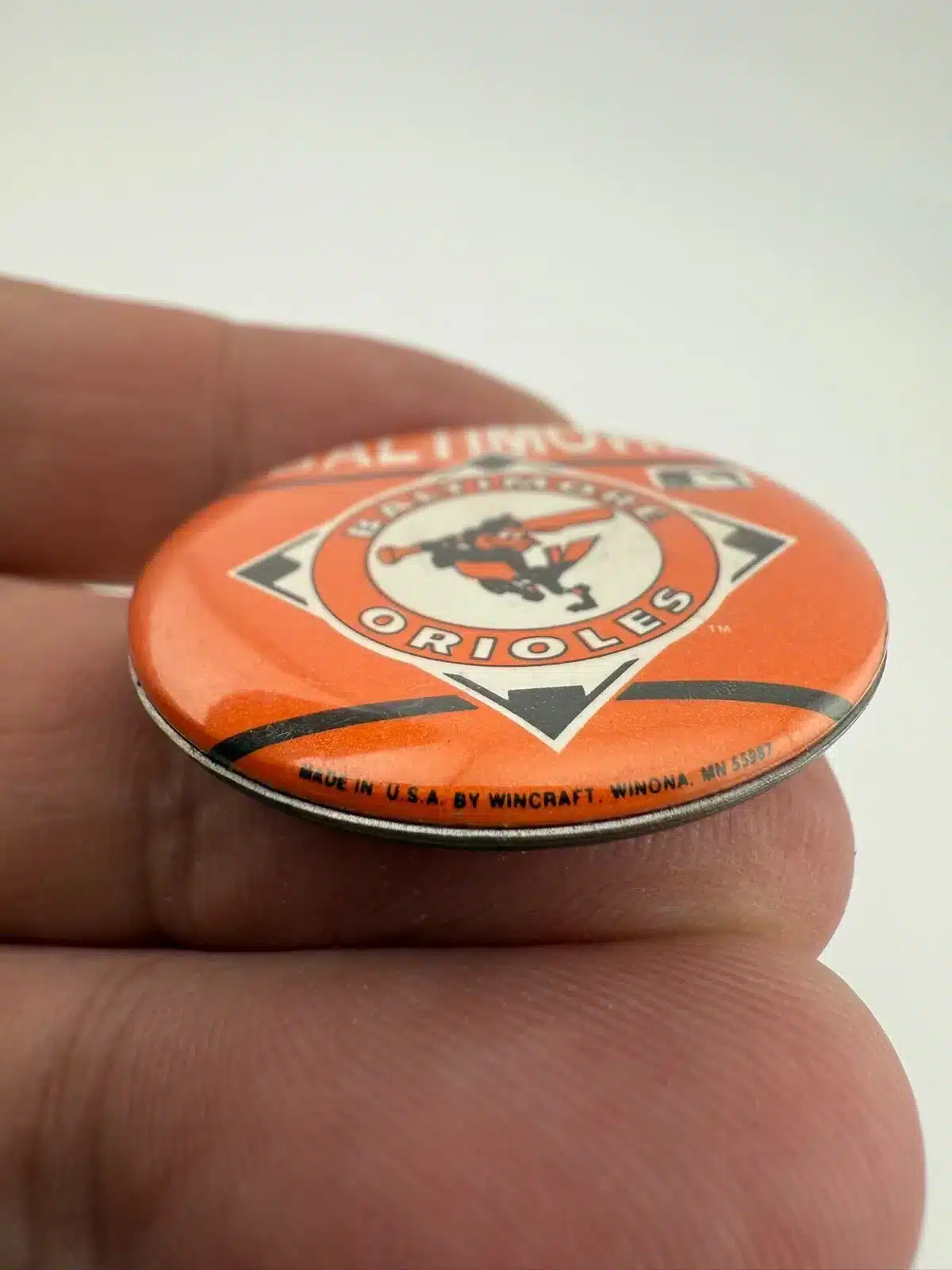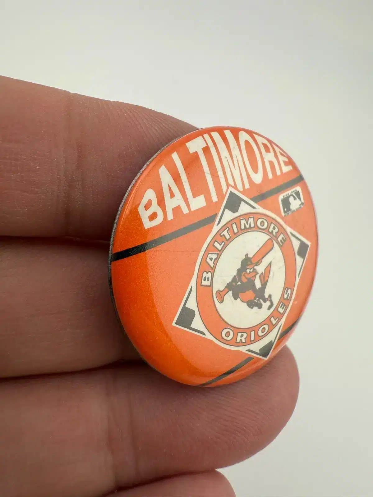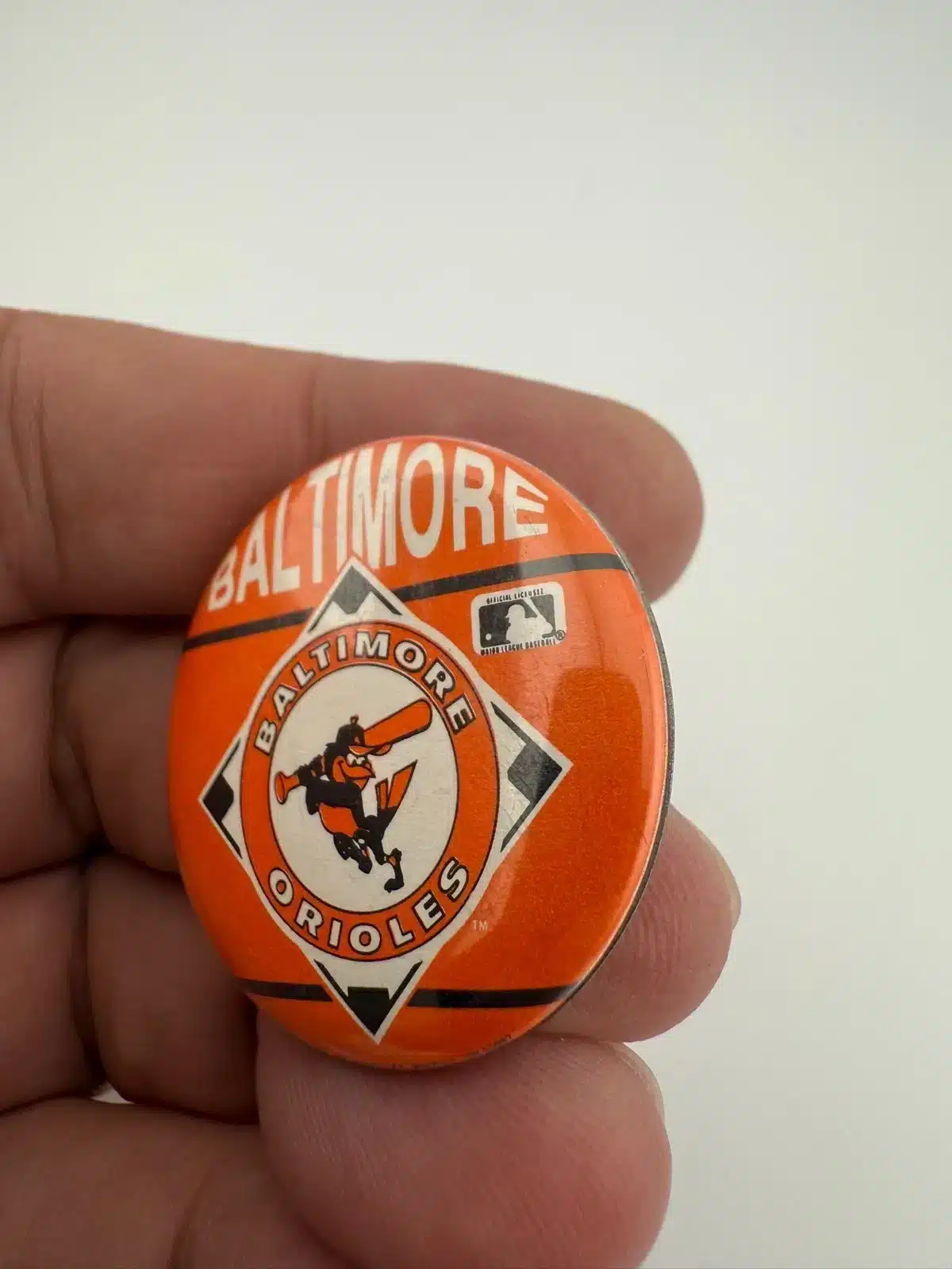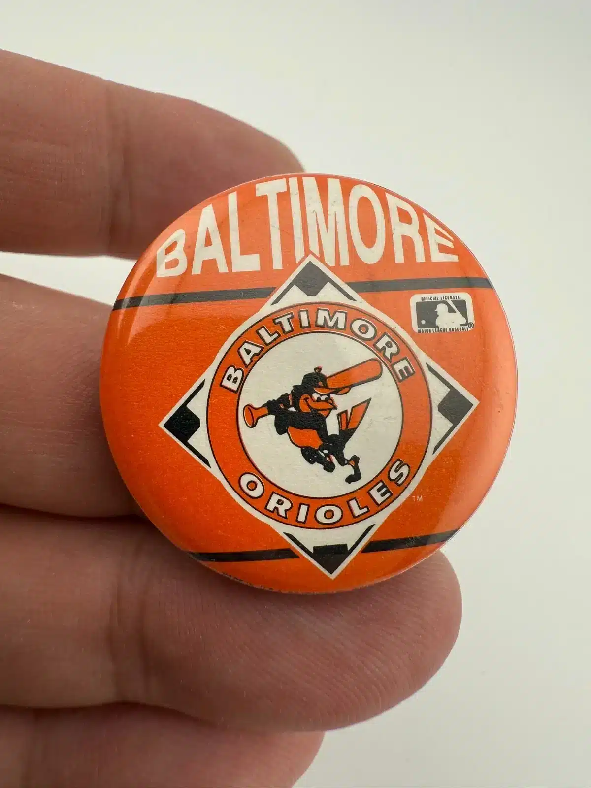 The Baltimore Orioles are a Major League Baseball team based in Baltimore, Maryland, with a history dating back to 1901 as part of the American League. This piece was manufactured by Aminco and measures approximately 1.25 inches in diameter.