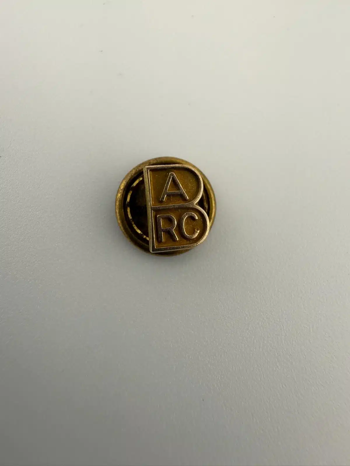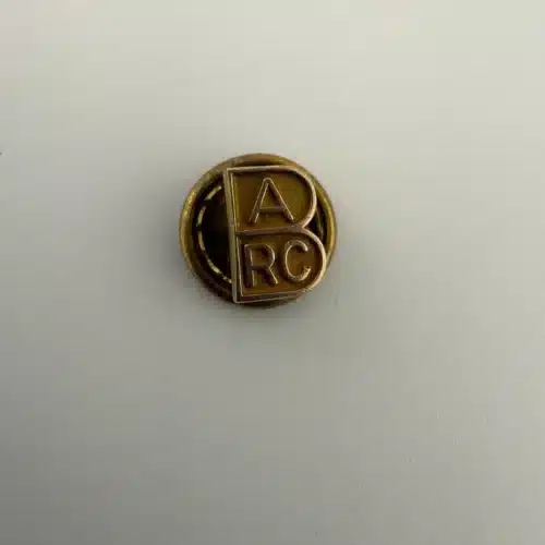 This pin is shaped like the letter B and incorporates the letters A in the upper portion and RC in the lower portion, forming the BARC acronym within the design. The compact layout creates a clean, monogram-style appearance and includes a screwback clasp.