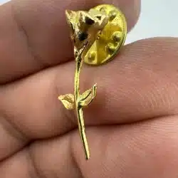 This small golden rose lapel hat pin features an elegant design that captures the delicate beauty of a rose in bloom.