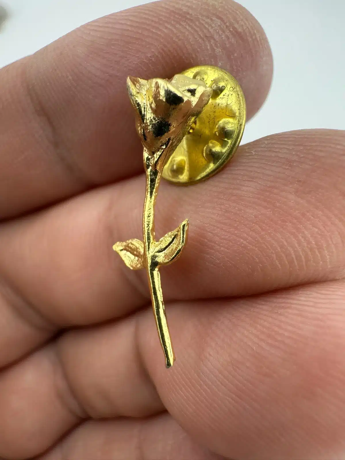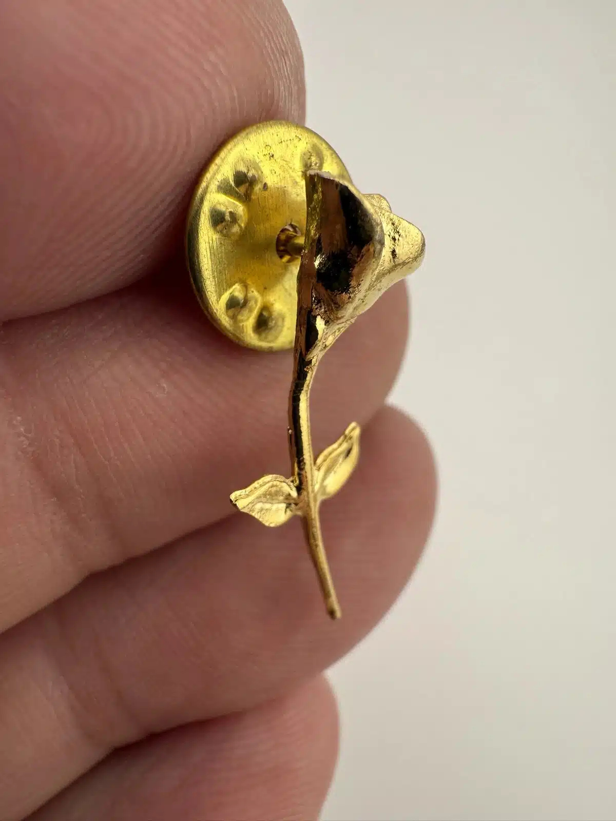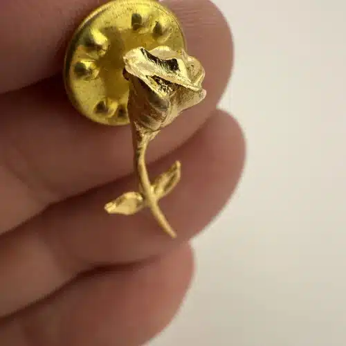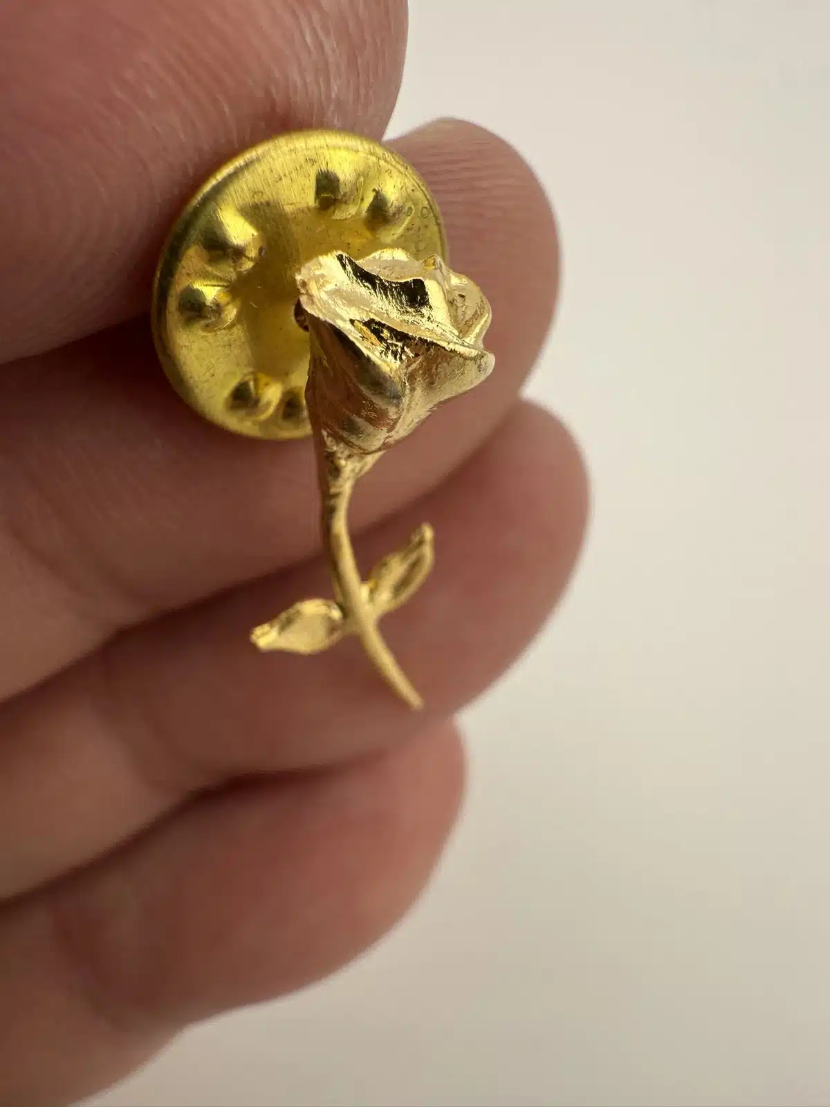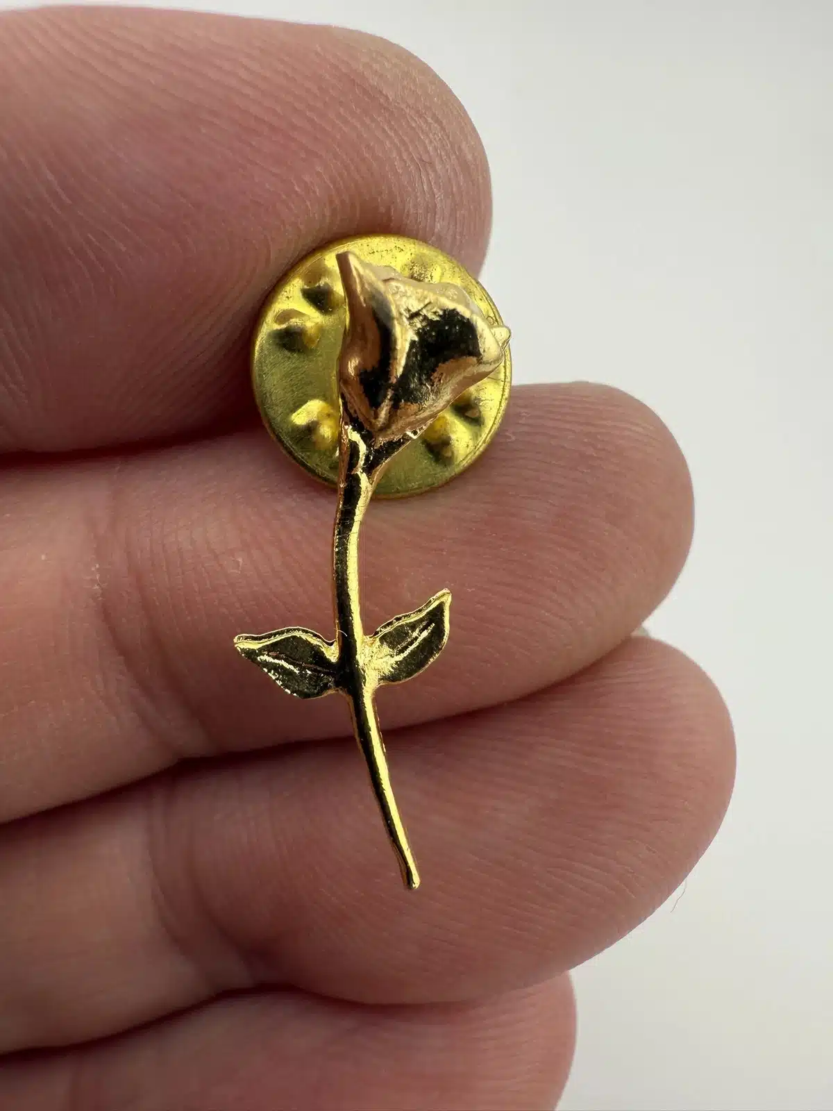 This small golden rose lapel hat pin features an elegant design that captures the delicate beauty of a rose in bloom.