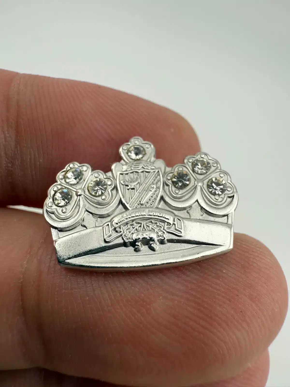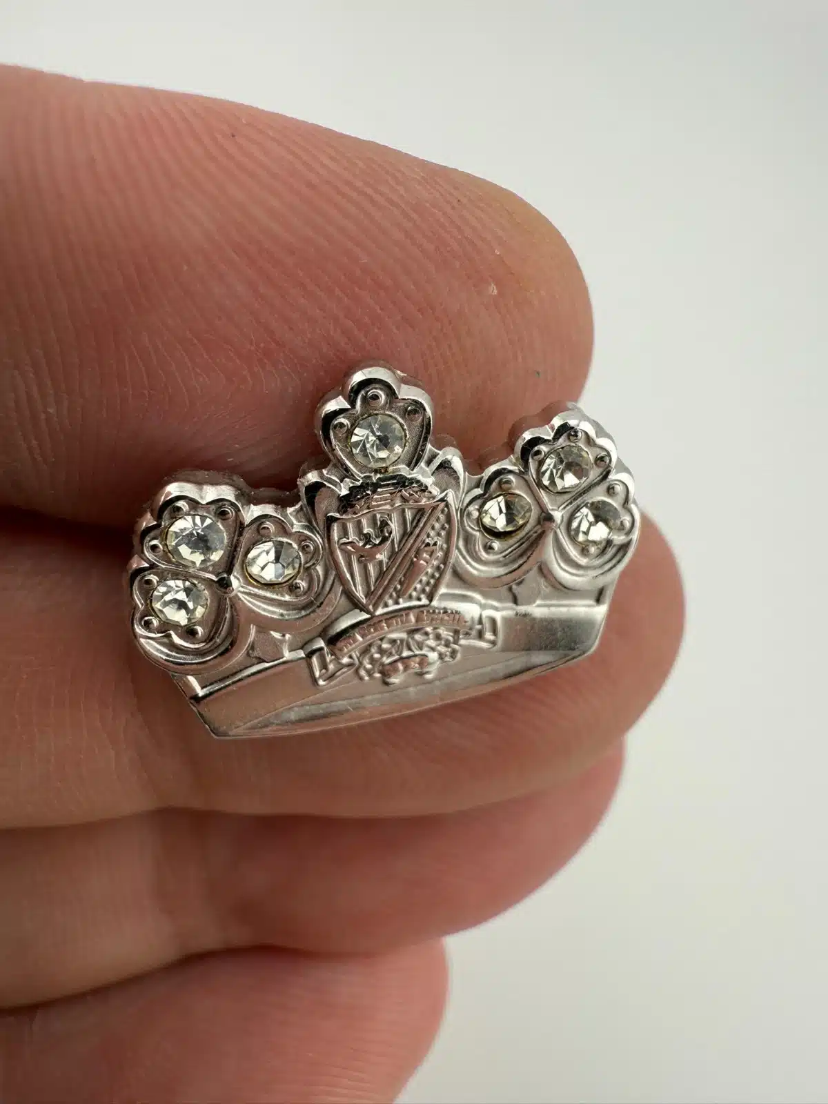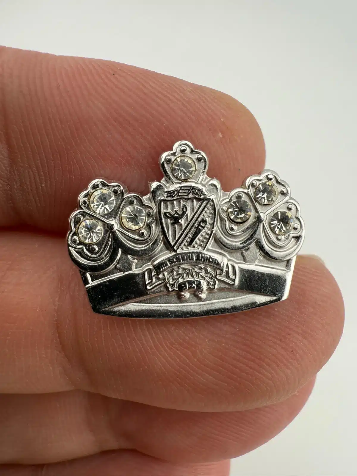 Beautiful pin brooch featuring a crown and rhinestones for Beta Sigma Phi Sorority. Does have the words Vita Scientia Amicitia but a little bit hard to read.