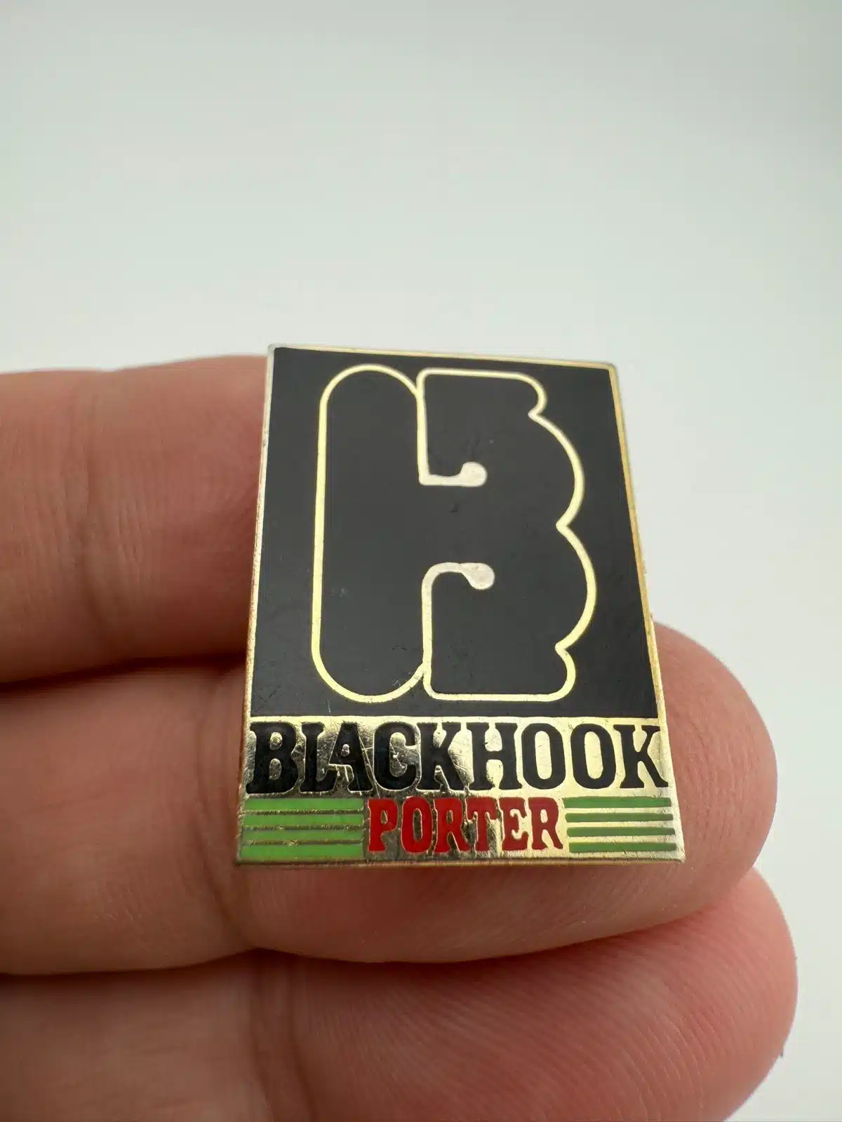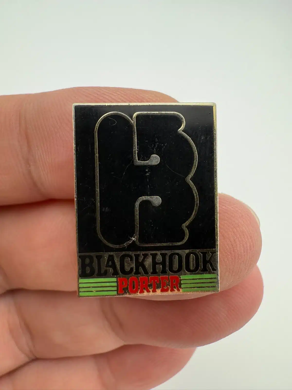 Blackhook Porter was an English-style porter produced by Redhook, the Seattle-founded brewery established in 1981 and known for its craft beer lineup in the Pacific Northwest. Pin measures approximately 3/4 inch in width by 1 inch in height.