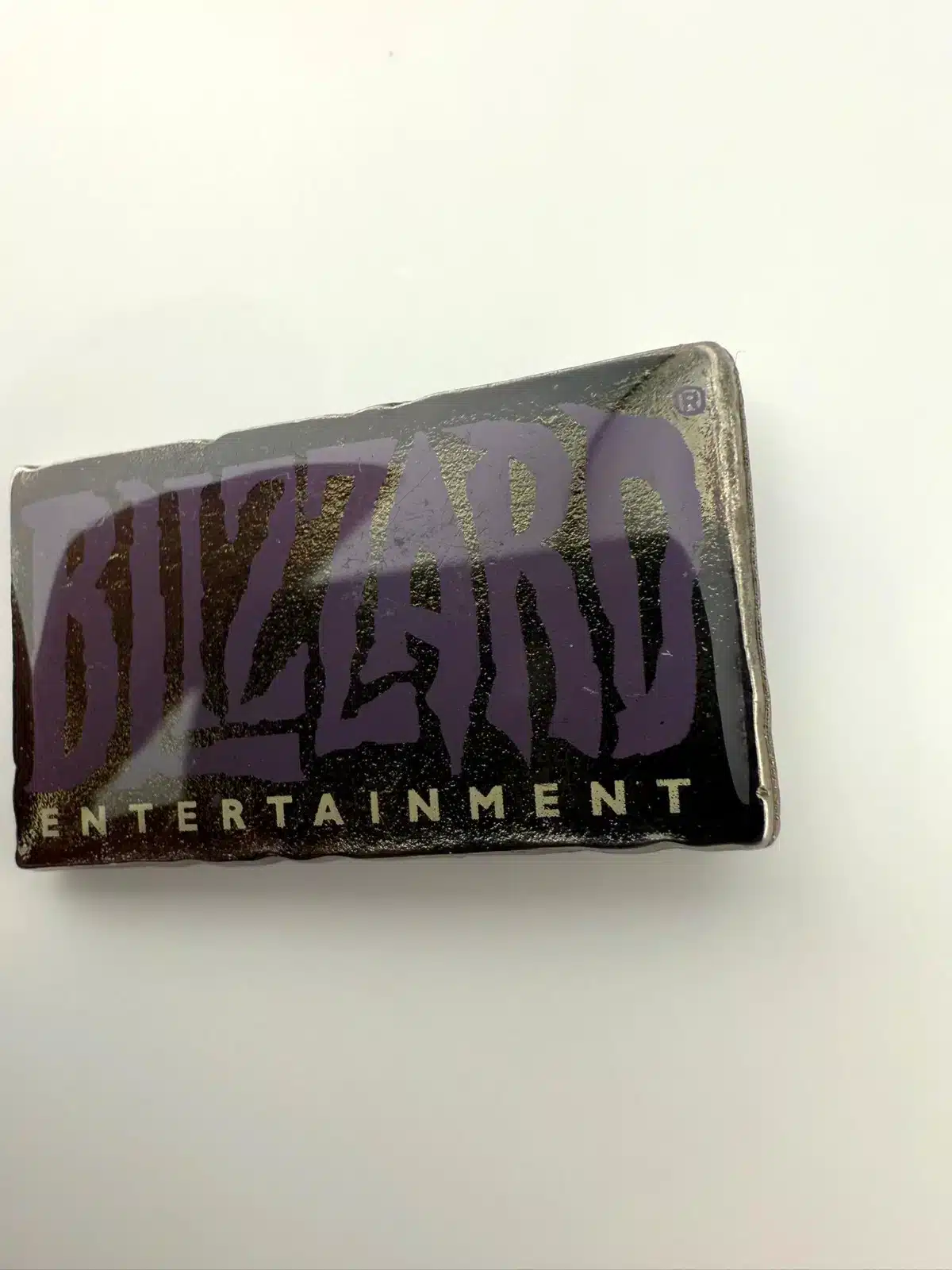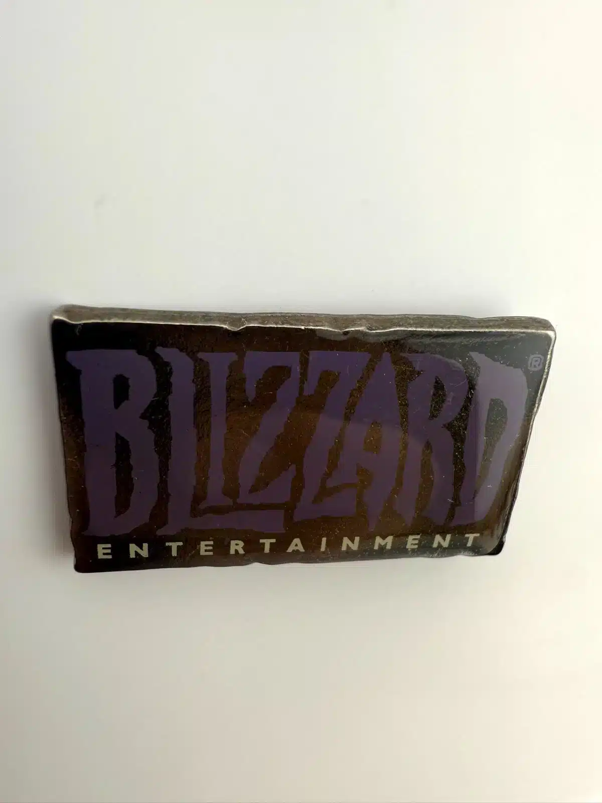 This rare Blizzard Entertainment pin features a unique purple and white logo design. It was given to attendees of the Women’s Summit.