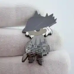 This Bloodborne Djura Chibi pin by Erik Scarecrow of ESC-TOY measures just under 1 inch in width by just over 1.5 inches in height and presents Djura in a stylized, compact form. The design blends the dark, atmospheric tone of Bloodborne with a playful chibi interpretation, reflecting ESC-TOY’s approach to reimagining iconic characters through designer art collectibles.