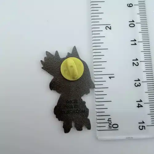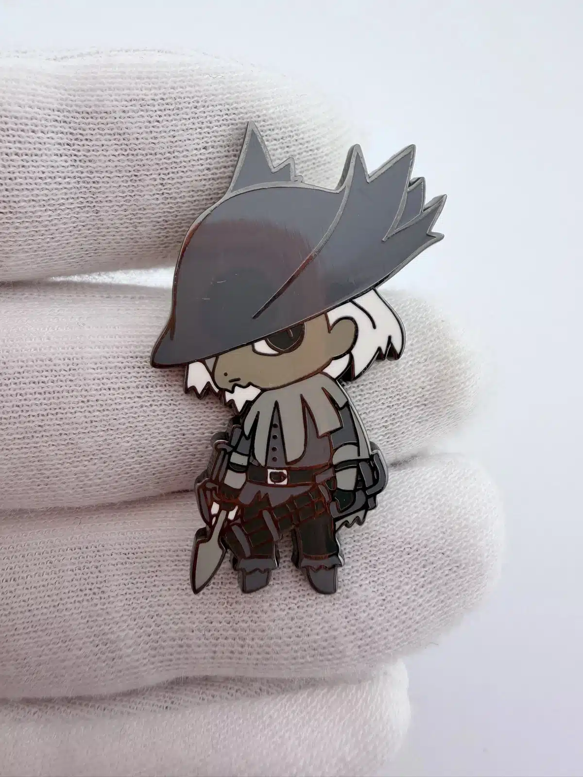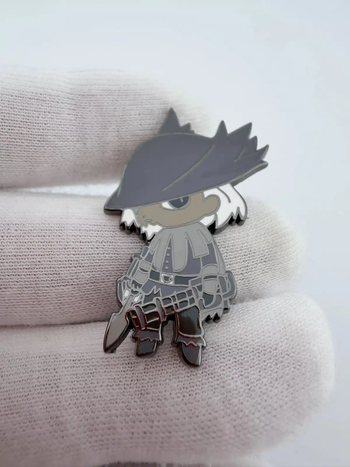 This Bloodborne Djura Chibi pin by Erik Scarecrow of ESC-TOY measures just under 1 inch in width by just over 1.5 inches in height and presents Djura in a stylized, compact form. The design blends the dark, atmospheric tone of Bloodborne with a playful chibi interpretation, reflecting ESC-TOY’s approach to reimagining iconic characters through designer art collectibles.