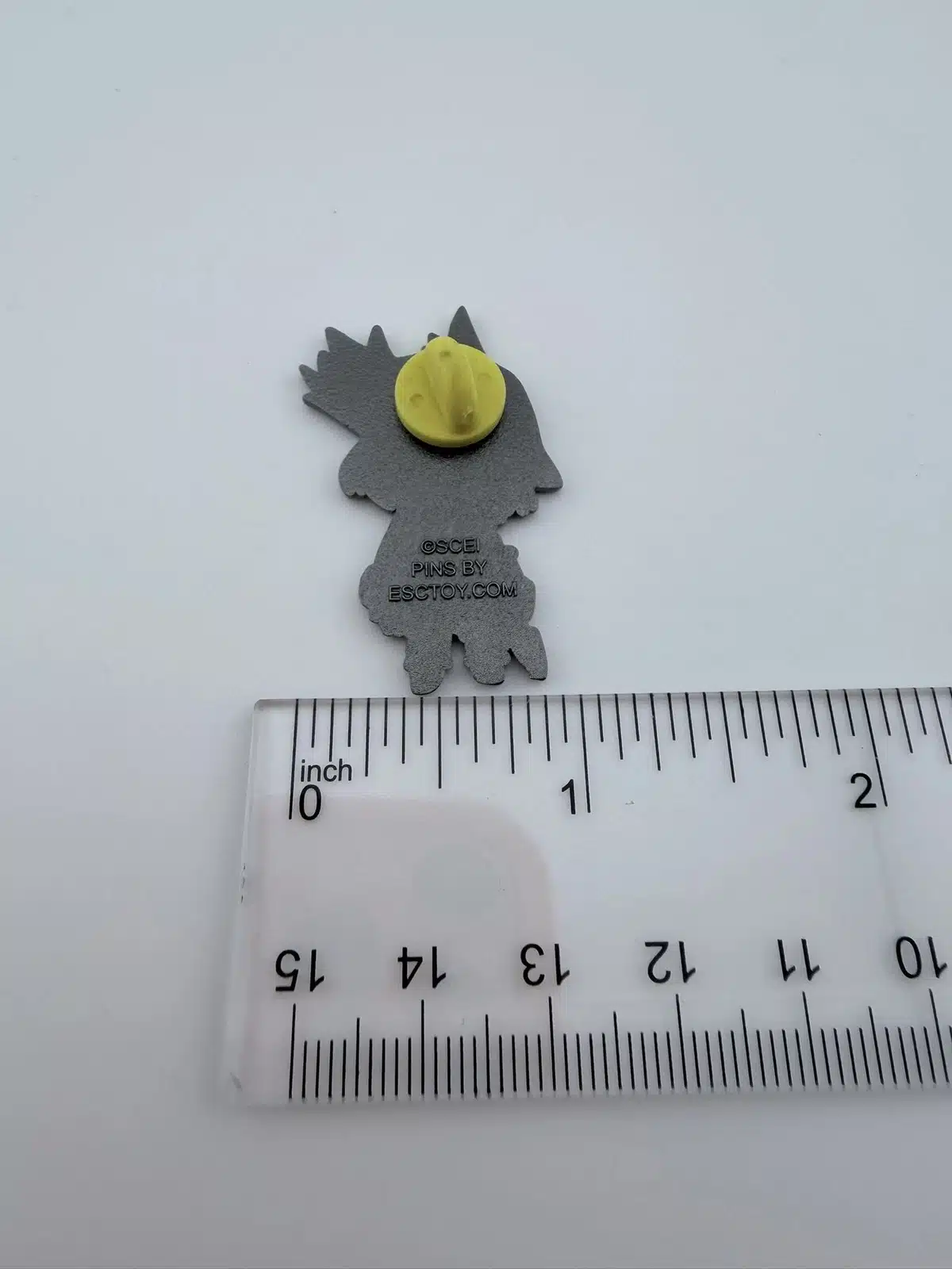 Erik Scarecrow is known for producing limited art toy pieces, and this pin carries that same fusion of gothic gaming influence and contemporary character styling.