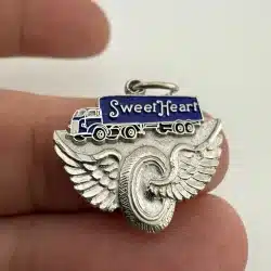 Blue SweetHeart Truck Over Winged Wheel Charm or Pendant