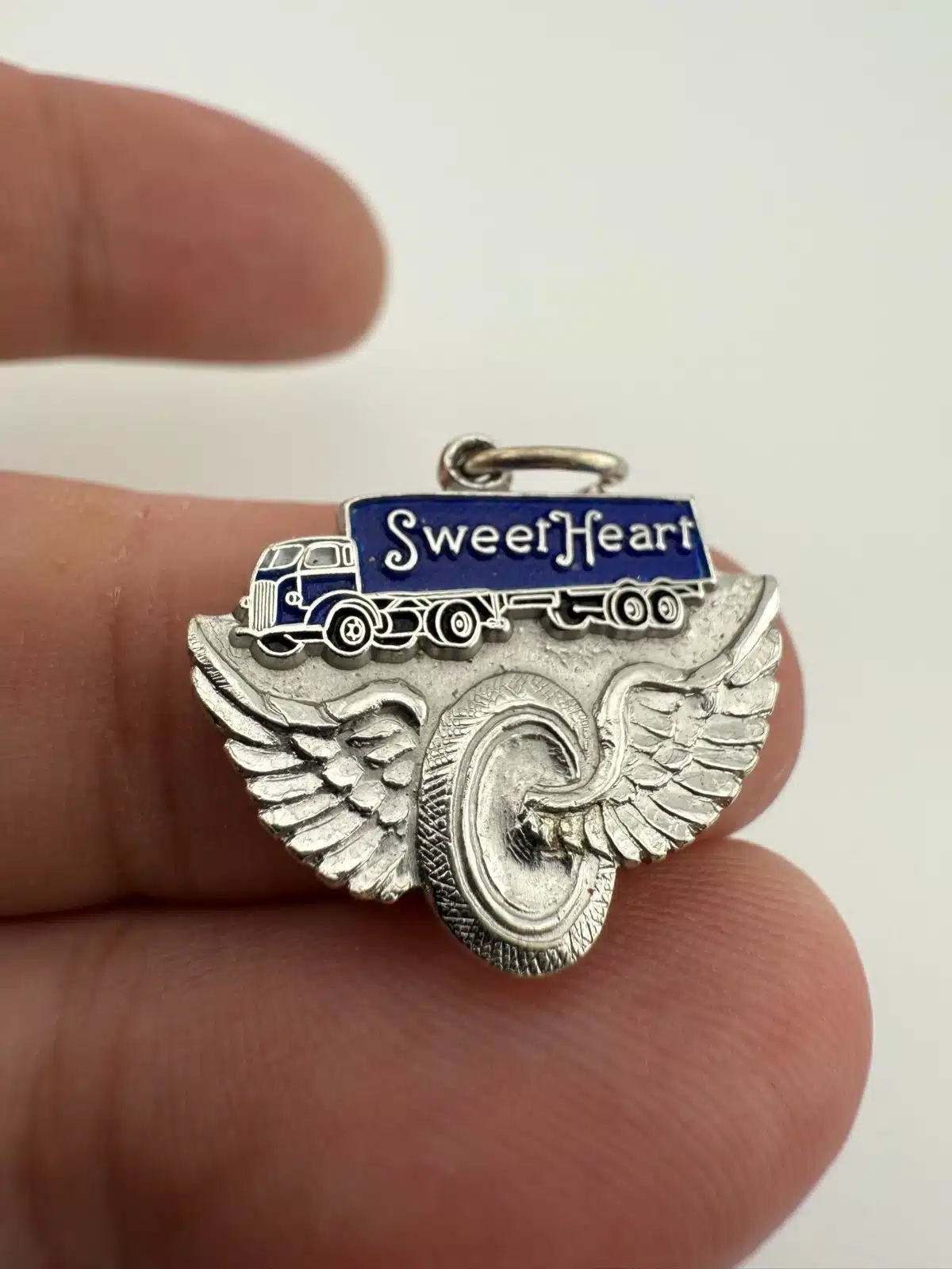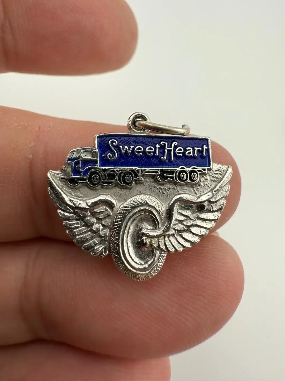 Blue SweetHeart Truck Over Winged Wheel Charm or Pendant