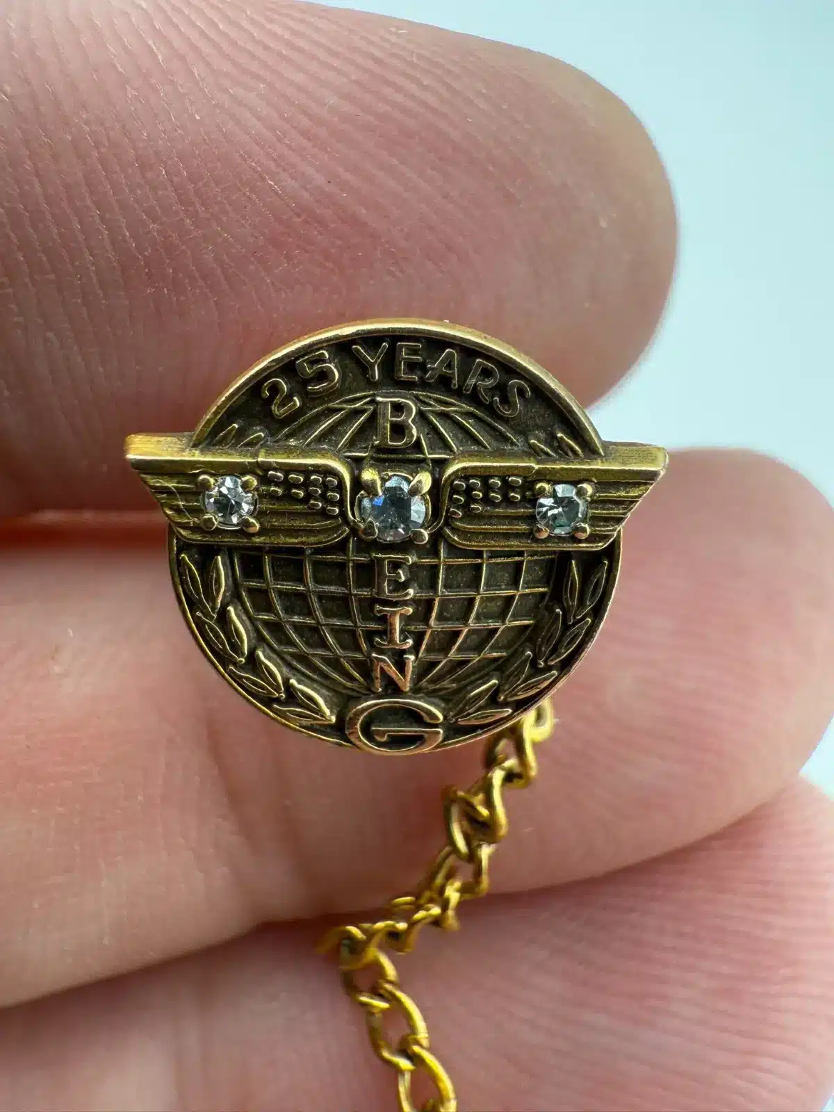 Boeing 25 Years Employee Service Pin Award – 1/10 10K GF + 3 Stones by Jostens