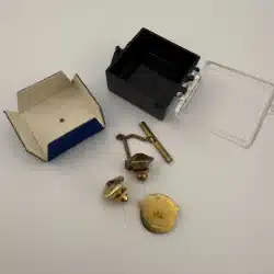 Used with minor marks and some light corrosion on back of pin. Comes with box and tie tack clasp as well as tie tack clasp on chain with bar. Please see all photos for exact condition of item and size.