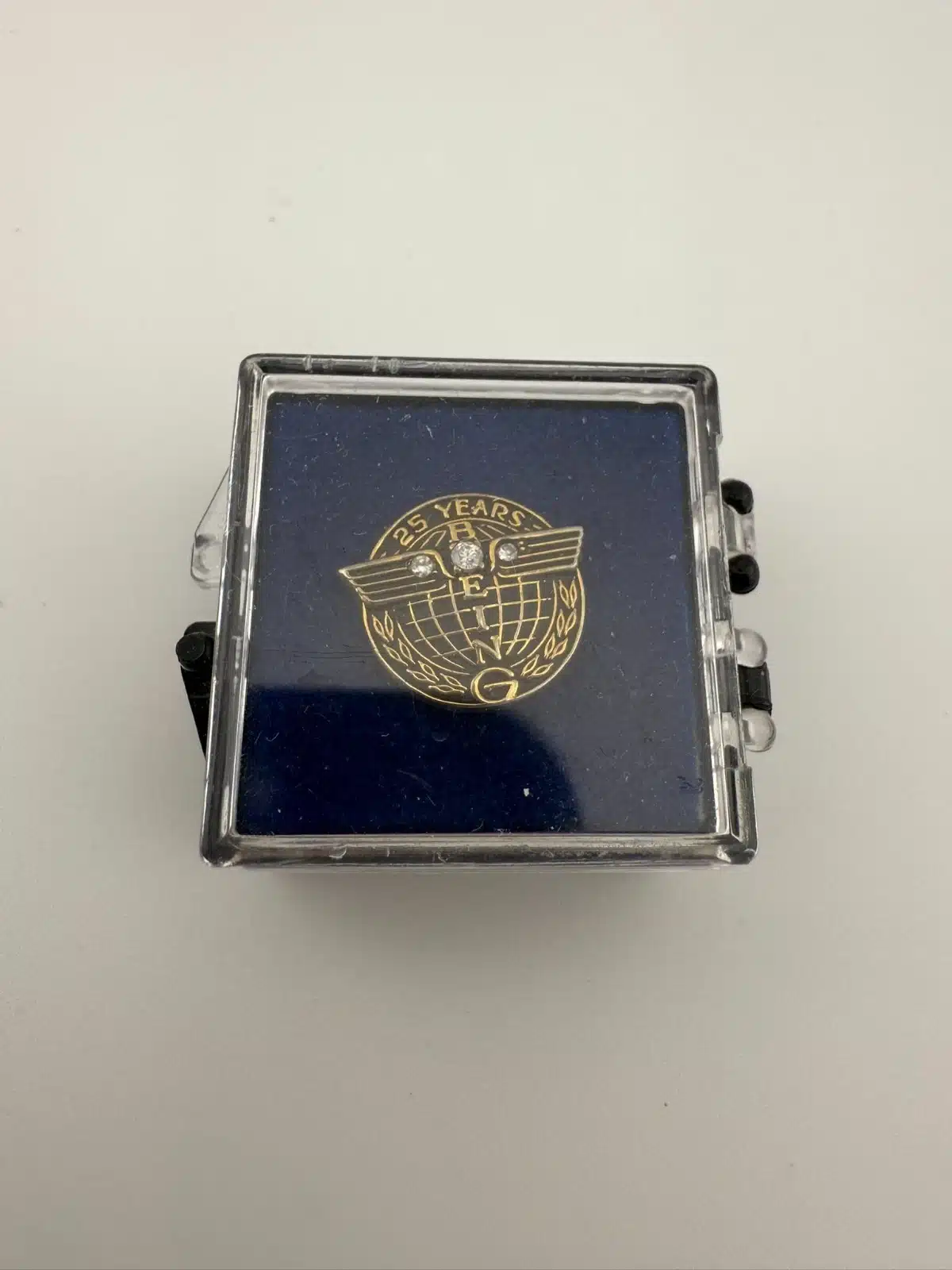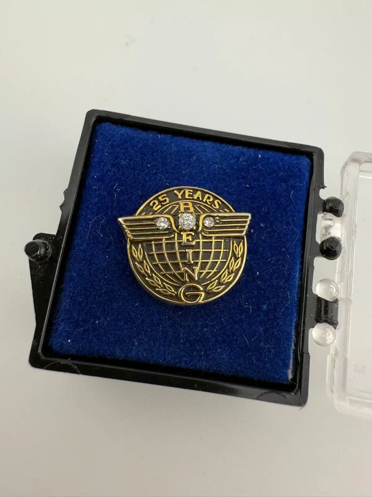 Boeing 25 Years Employee Service Tie Tack Pin – 1/10 10K GF + 3 Stones + Box