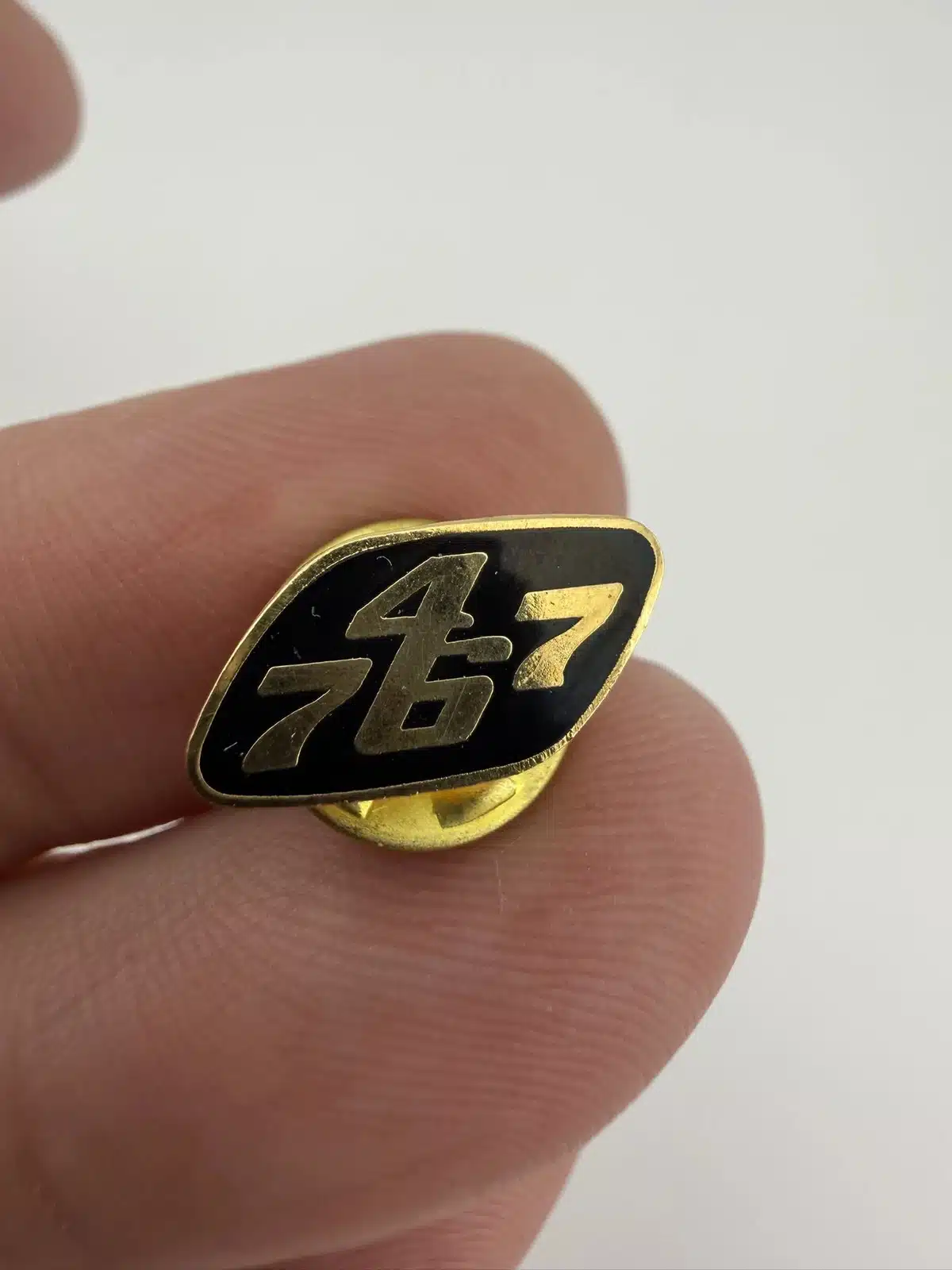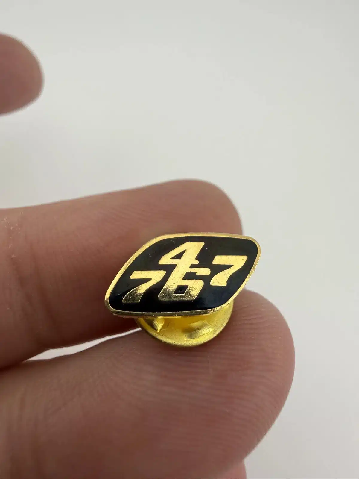 This pin features a sleek design with black enamel as the background, prominently displaying the numbers ‘747’ and ‘767’ in a striking gold tone. The Boeing 747 and 767 are iconic aircraft models that have significantly influenced commercial aviation since their introductions in the 1970s and 1980s, respectively.