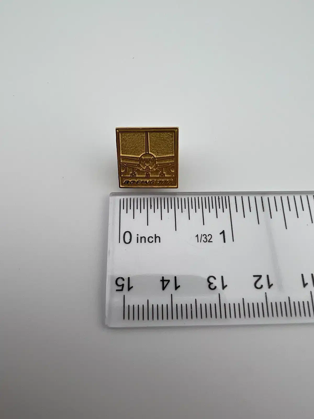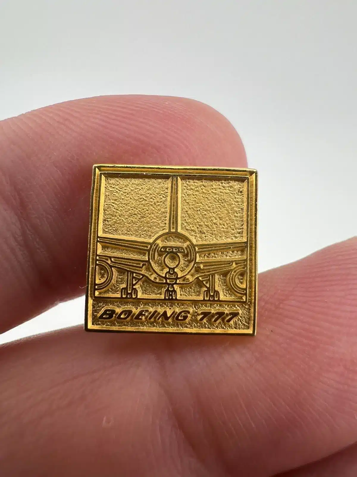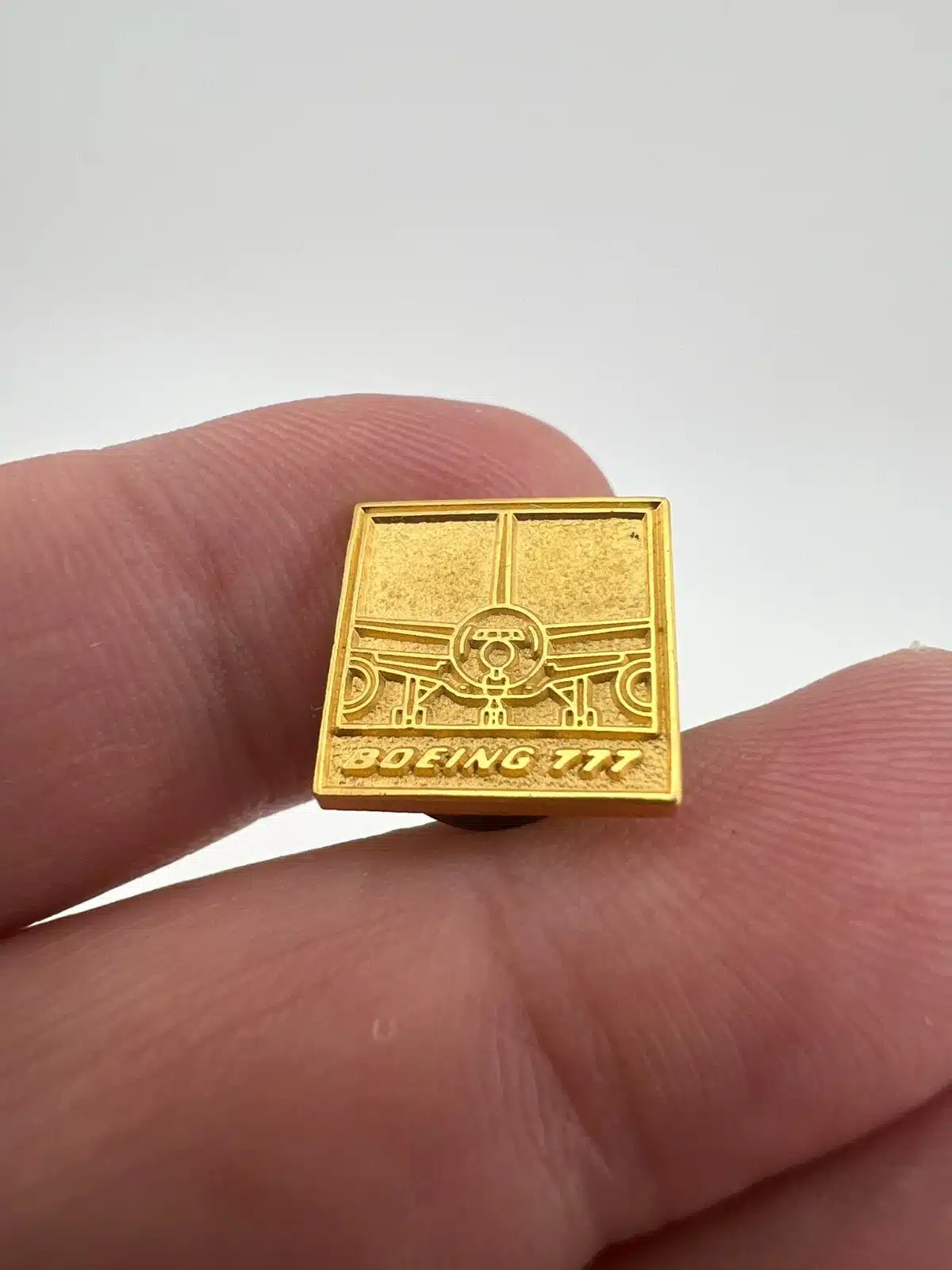 BOEING 777 ADVERTISEMENT PIN – Square – Gold tone – Used