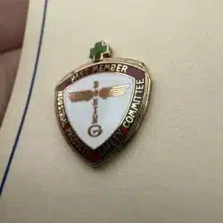 This extremely rare pin features the older totem pole style Boeing logo prominently in the center, a small green cross at top, and is for a past member of the Industrial Products Safety Committee. Its design reflects the company’s commitment to safety and innovation in aerospace engineering. Most likely still on the original paper backing it came on. I was only able to find one of these that has sold in the past 15 years.