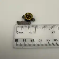 Raisin characters have been used in various promotional and advertising campaigns, often styled with expressive poses and activities like sports. Pin measures approximately 1 inch in width by 3/4 inch in height.