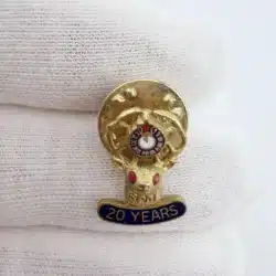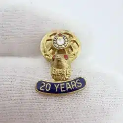 This pin features the emblem of the Benevolent and Protective Order of Elks, showcasing the organization’s distinctive elk head design. The 20 Year Member designation is elegantly incorporated below, signifying a significant milestone in dedication to the values and community service of the Elks.