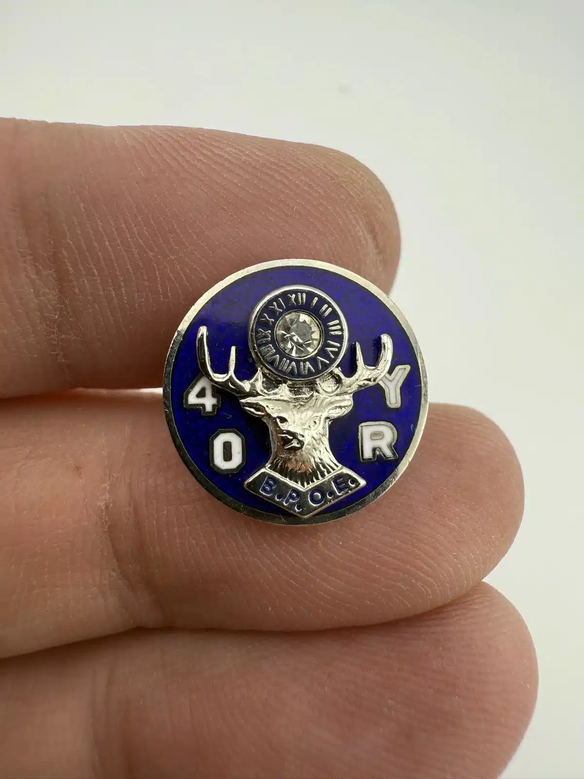 This 40-year pin features the emblem of the Benevolent and Protective Order of Elks, showcasing a distinctive silver tone elk head and B.P.O.E. below.