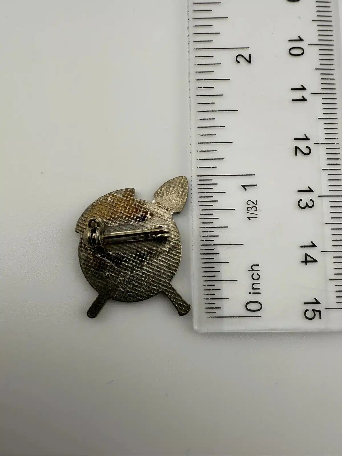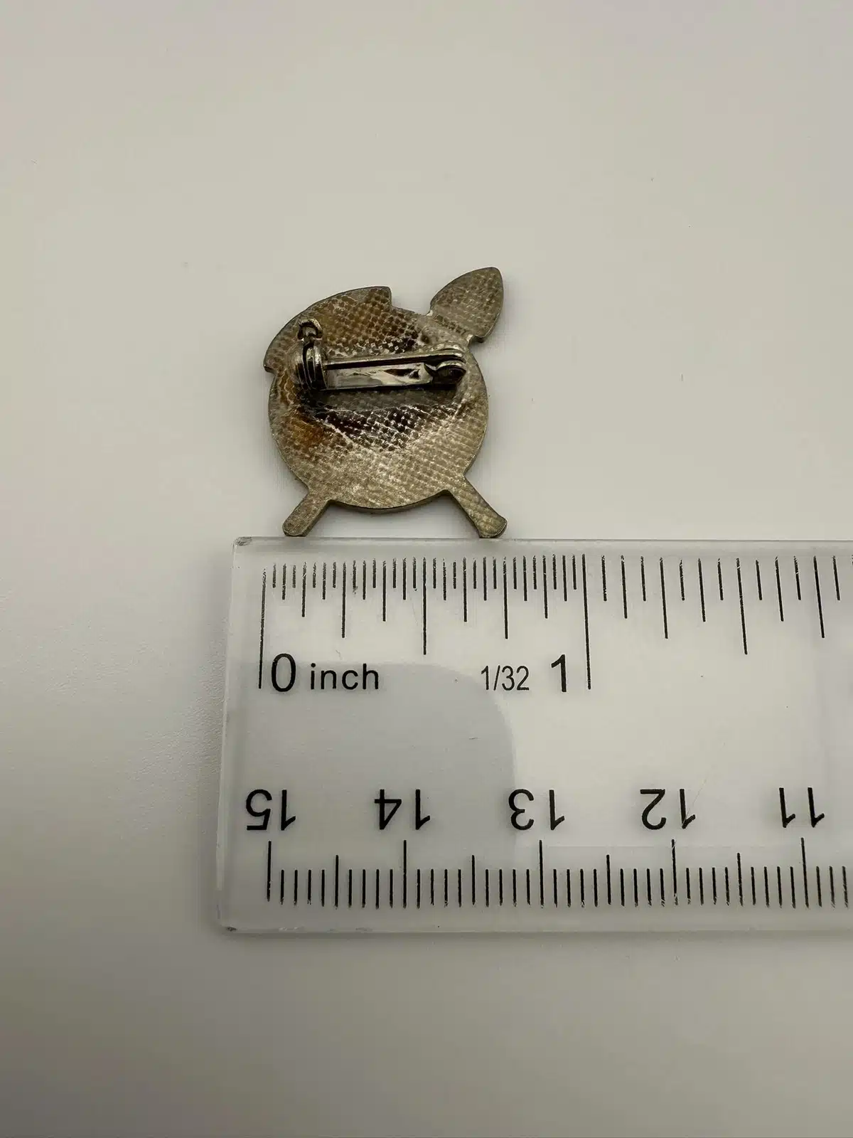 Condition: Used with marks including aged / discolored enamel and discolored rear of pin. Clasp is functional. Please review all photos for exact condition of item and size.