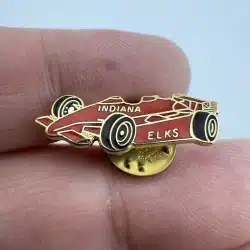 This lapel pin features a striking red race car design, symbolizing the spirit of competition and camaraderie among the members of the Benevolent and Protective Order of Elks of Indiana. The pin serves as a tribute to the organization’s community involvement and support for local racing events.