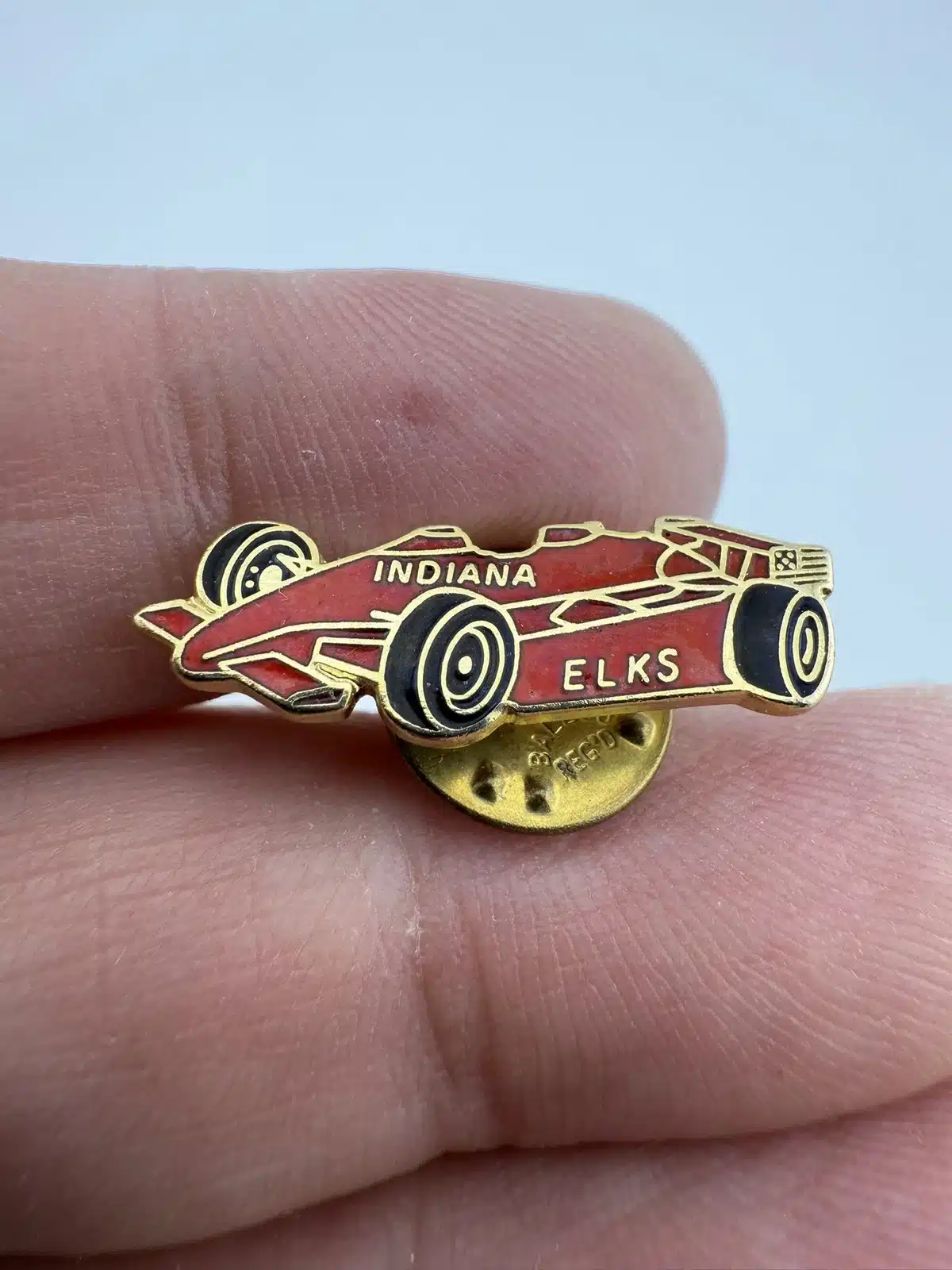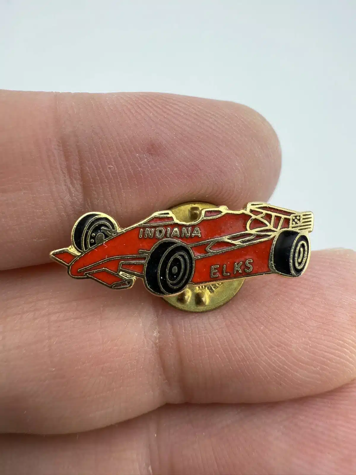 BPOE Elks Of Indiana Red Race Car Lapel Pin
