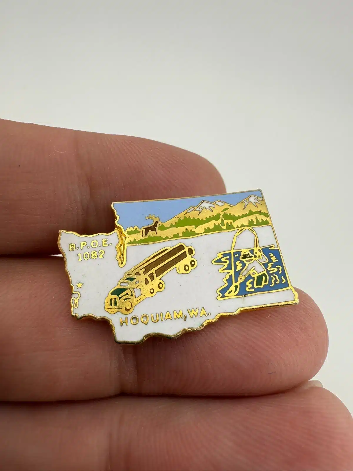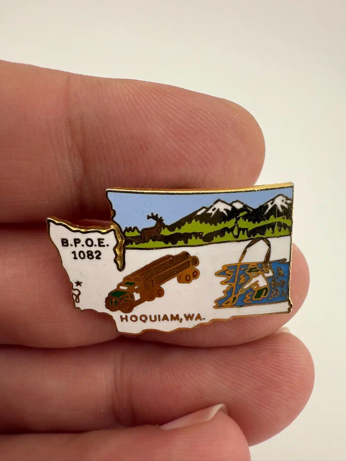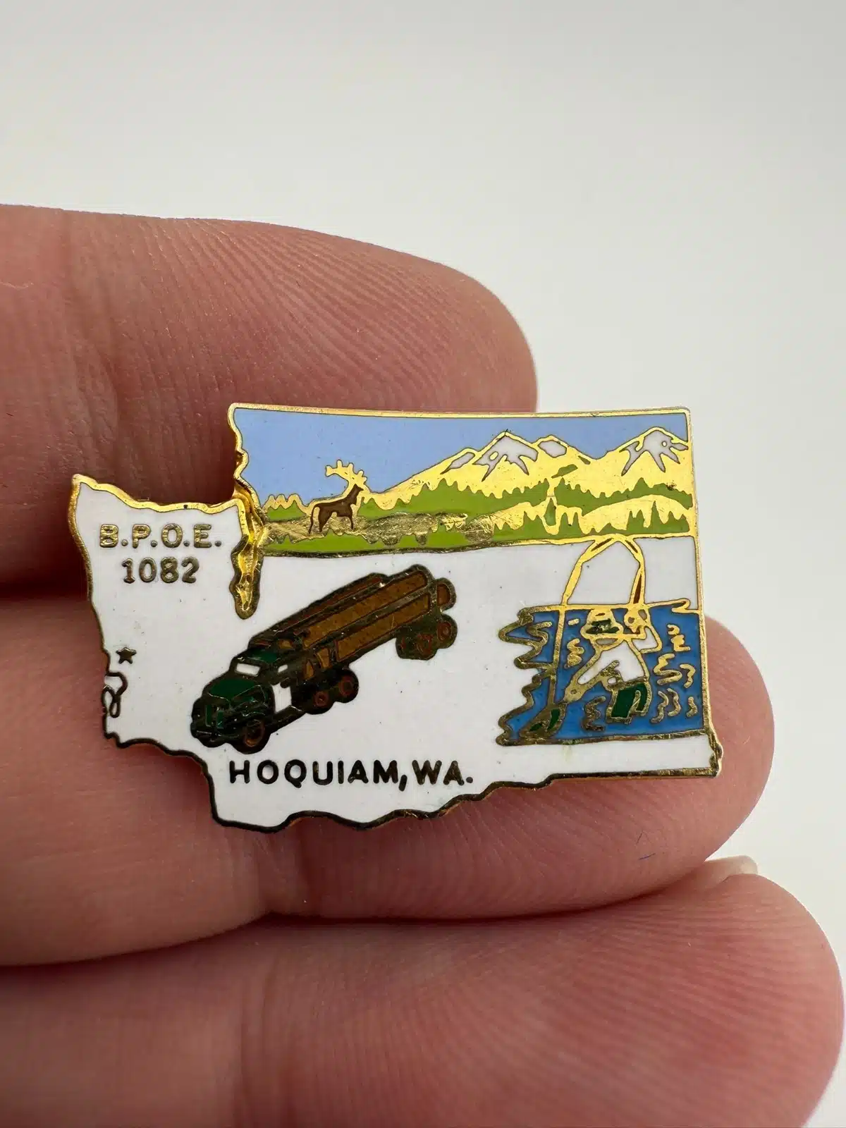 BPOE Hoquiam Washington Elks 1082 Pin with Log Truck, Fisherman, Mountains, etc