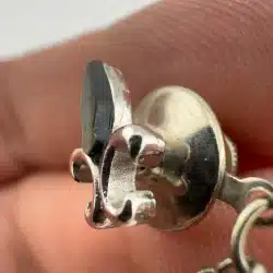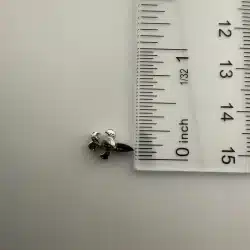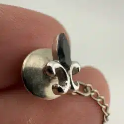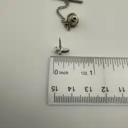 Used with marks. Not sure what the top layer is made out of. Similar pins have mother of pearl, so its possible this is black mother of pearl. Please see all photos for exact condition of item and size.